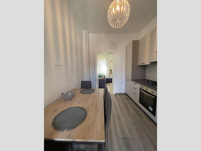 Si tratta di un luminoso immobile situato al primo piano di una palazzina di soli due piani, completamente ristrutturato e mai abitato, dotata di ascensore. L'ingresso si apre su un ampio e luminoso soggiorno e pranzo, la cucina è abitabile arredata con mobili nuovi è dotata di elettrodomestici moderni ed è separata dal soggiorno, balcone con vista su corte interna silenziosa.
