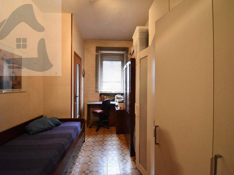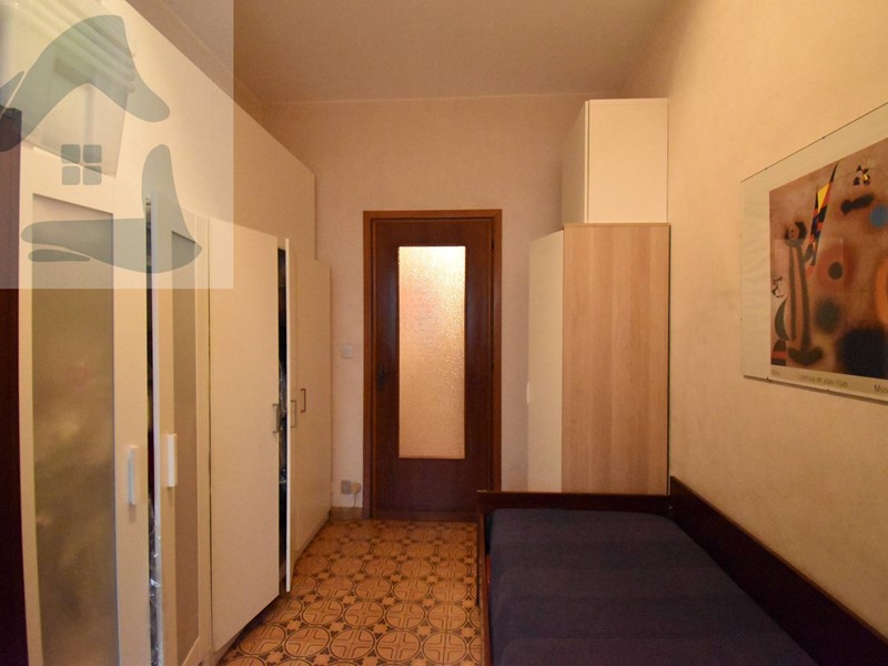 Dal primo ingresso si accede a un disimpegno che conduce a una cameretta con bagno privato finestrato e alla cucina abitabile, affacciata su un balcone interno cortile, tranquillo e riservato.