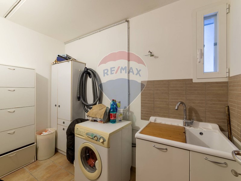 Collegata internamente sia da scala in legno che da montacarichi, la taverna, uno spazio jolly di grande godibilità, dotata di bagno e lavanderia con accesso diretto al garage doppio completo di basculante automatizzata e alla comoda rampa munita di cancello carrabile con apertura automatizzata.