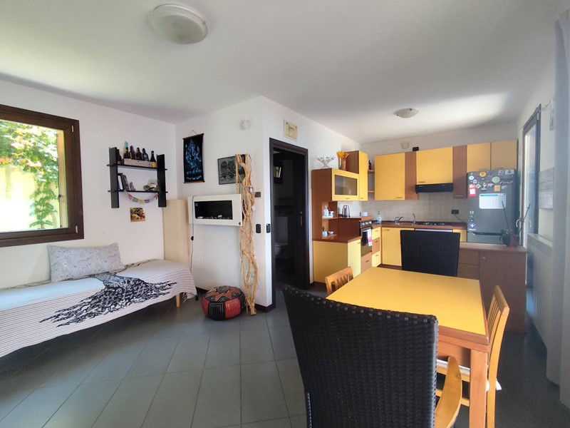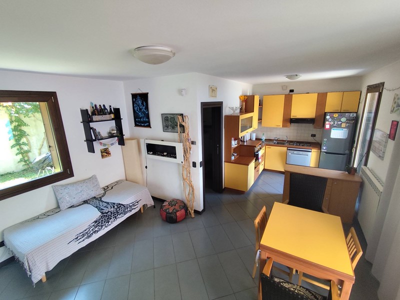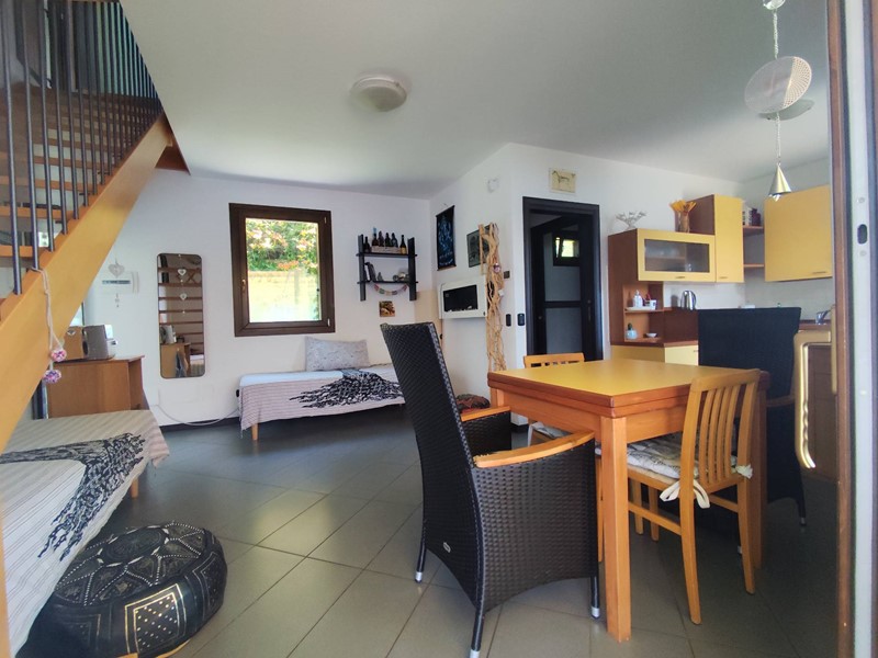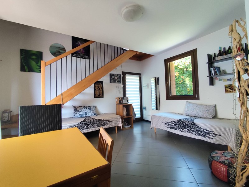 Al piano principale si sviluppa la zona giorno composta da luminoso living con angolo cottura attrezzato, antibagno con lavatrice e bagno con doccia.