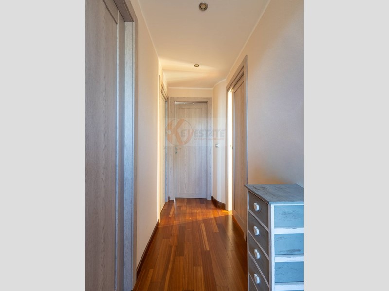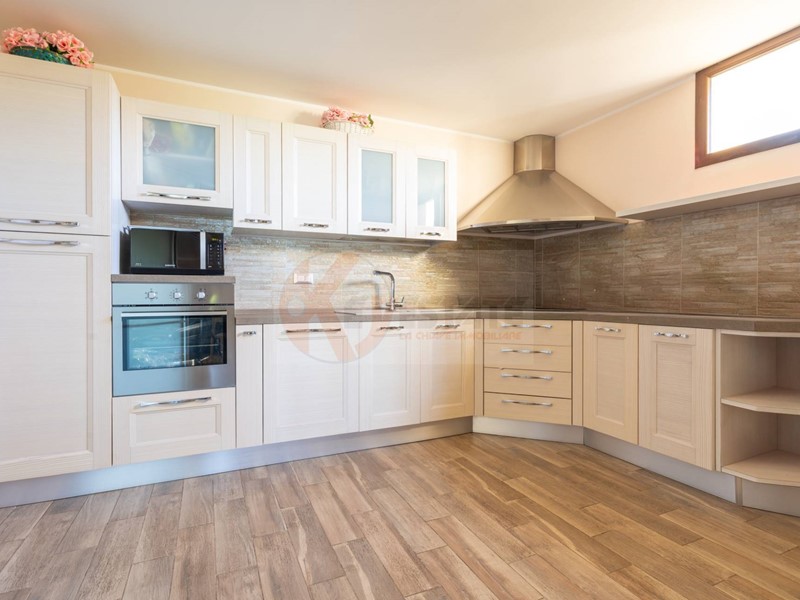 Allinterno, un luminoso soggiorno accoglie la zona giorno e si collega tramite una porta scorrevole in vetro alla spaziosa cucina abitabile, ideale per condividere momenti di convivialità.
