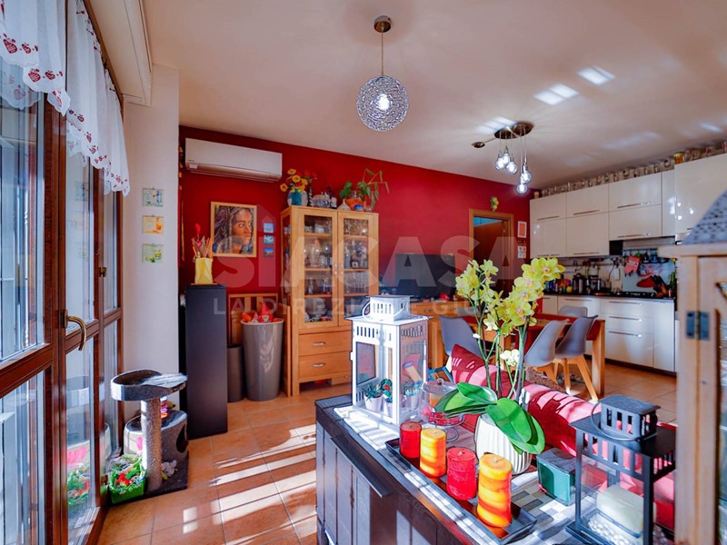 In una tranquilla zona residenziale (in via a fondo chiuso), allinterno di una palazzina del 2009 composta da sole 8 unità abitative (4 al piano terra con giardino e taverna e 4 al primo piano con terrazzo e mansarda), nasce questa splendida abitazione, rifinita ed abitata dal 2014, che unisce comfort contemporaneo e calore domestico in ogni dettaglio.