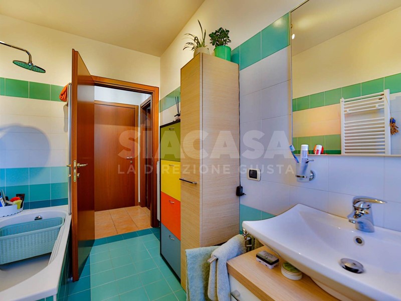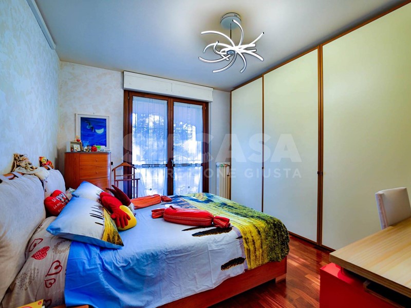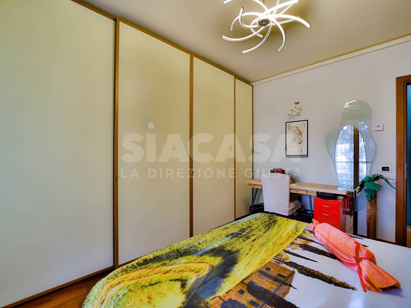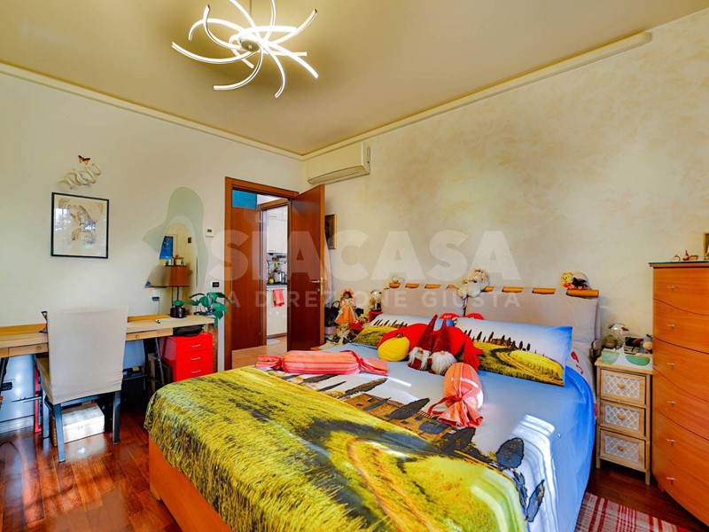 Un disimpegno conduce alla camera da letto matrimoniale, anchessa con accesso diretto al terrazzo, e al bagno finestrato, curato e funzionale.