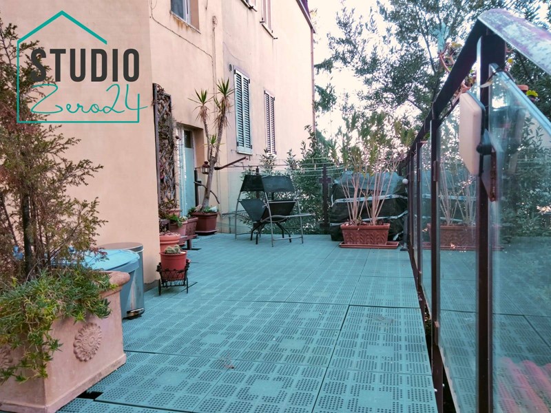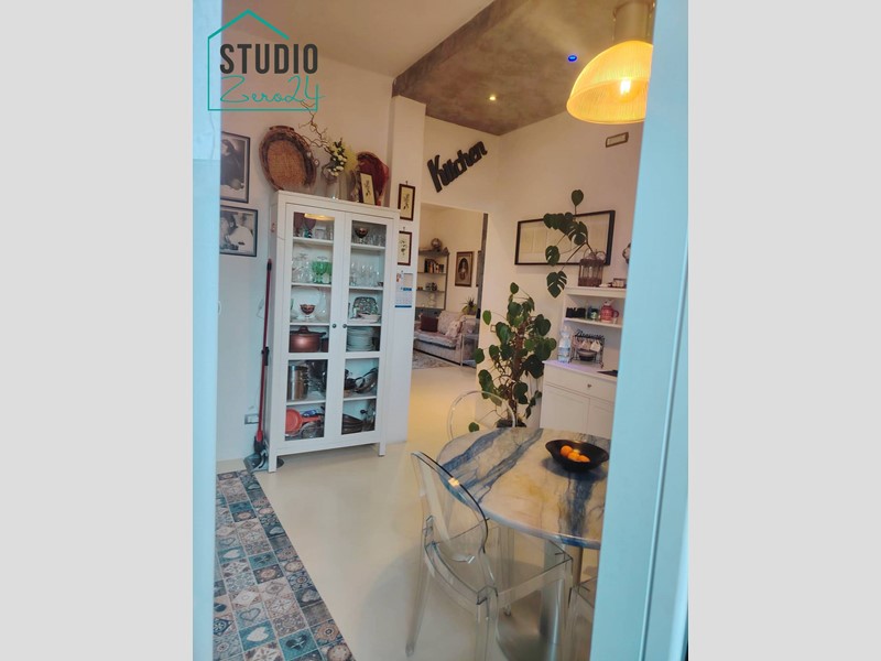 L'abitazione si compone di ampia zona giorno con accesso al lastrico privato, cucina abitabile con balcone, bagno finestrato con doccia, e camera matrimoniale con uscita sul balcone.