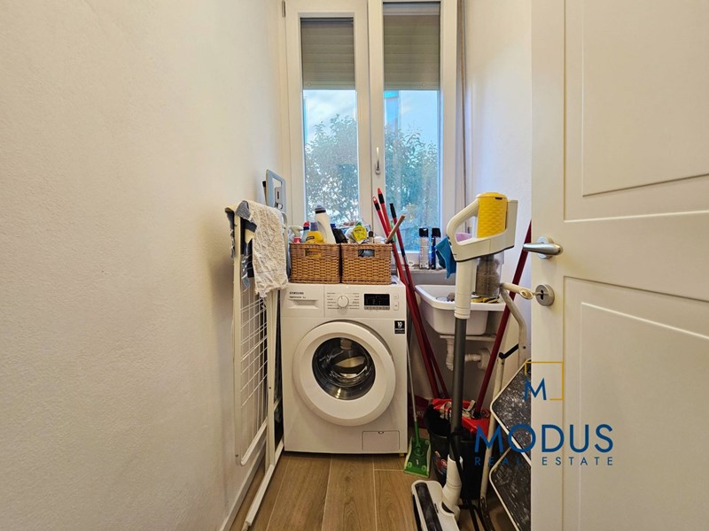 Lingresso accompagna verso una cucina moderna e funzionale dotata di balconcino con pozzetto, una sala doppia con finestra e porta-finestra che si affacciano su un secondo balcone, garantendo luce naturale e ariosità agli ambienti. La sala, che attualmente occupa due vani, offre la possibilità di ricavare la terza camera senza compromettere la praticità degli spazi.