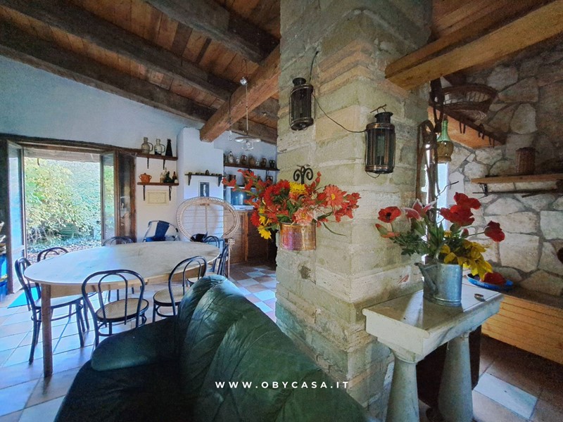 Completano la proprietà un garage di circa 16 mq, staccato dallabitazione, un caratteristico casaletto di circa 15 mq e un terreno di oltre 10.440 mq che abbraccia dolcemente la casa, recintato su tre lati, lievemente in declivio e con ad alto fusto, oltre a una zona di castagneto, oggi da ripulire, che aggiunge un tocco autentico e naturale al contesto.
