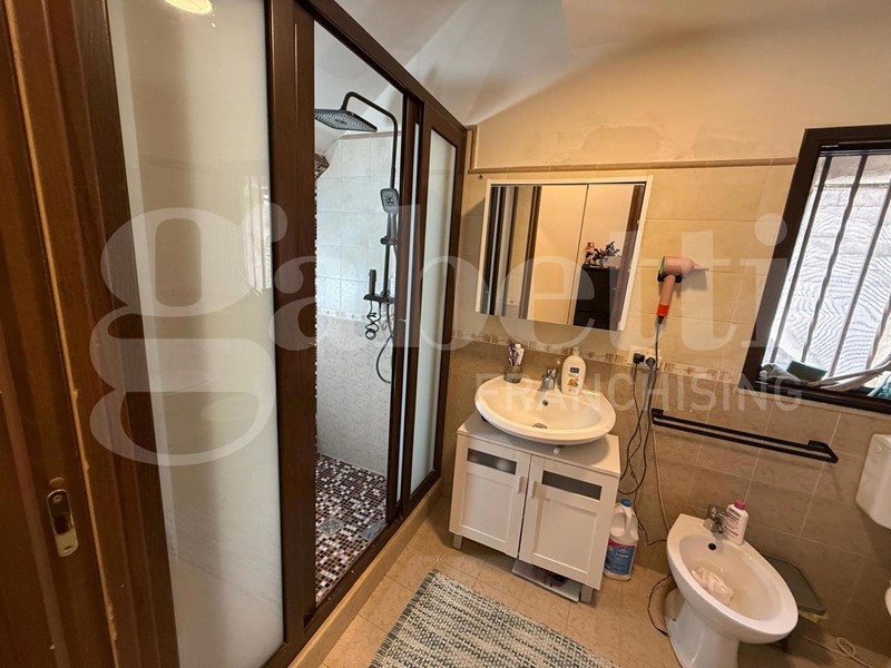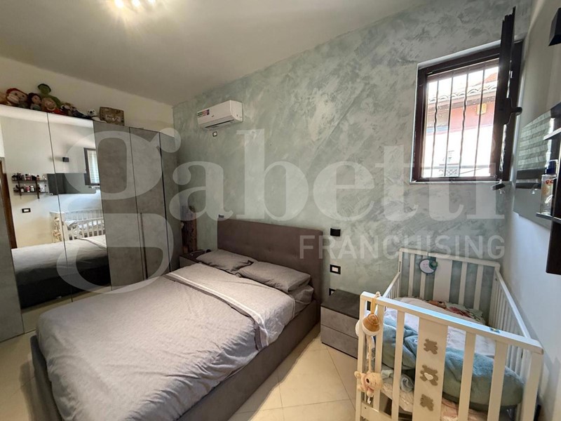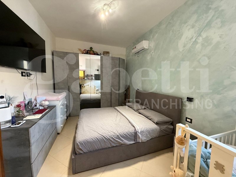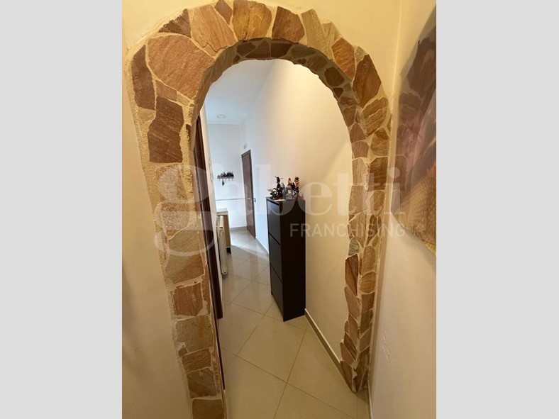 Al piano terra l'accesso sul disimpegno con angolo cottura, ci conduce tramite corridoio alla camera letto matrimoniale e bagno con box doccia.