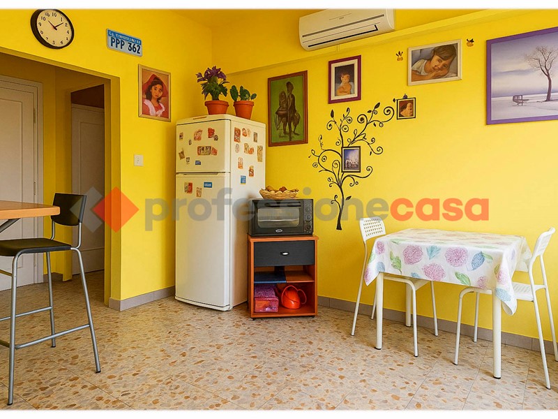 La distribuzione interna offre la possibilità di una nuova configurazione funzionale utilizzando il Salone come seconda Camera ottenendo così un'abitazione con due Camere e la zona giorno costituita dall'attuale Cucina-Tinello.