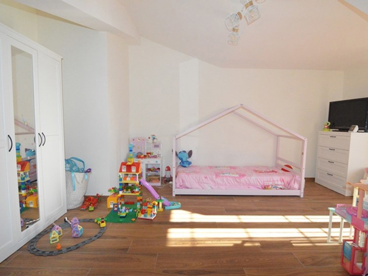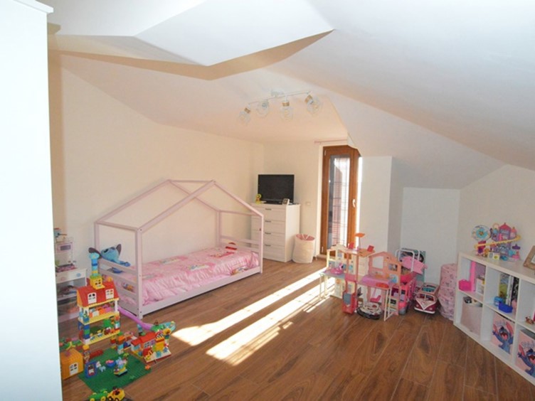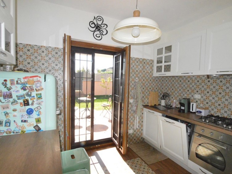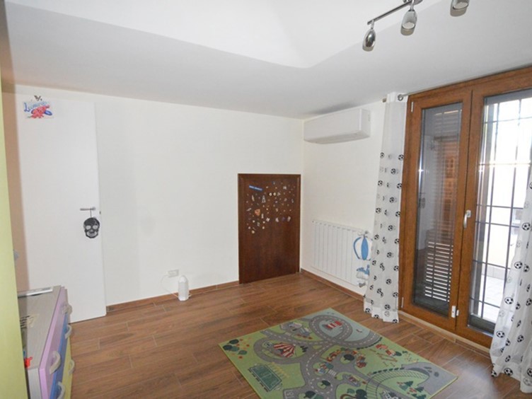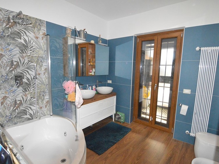 La composizione è così suddivisa: P.T. : Salone con camino, cucina, camera matrimoniale con cabina armadio, bagno con vasca, lavanderia, giardino a livello con due portici; P1: due camere matrimoniali, bagno con doccia, due terrazzi, ed un ripostiglio sottotetto; PS1: una grande sala hobby con cucina a vista, disimpegno, bagno con doccia, camera matrimoniale, box e locale tecnico.