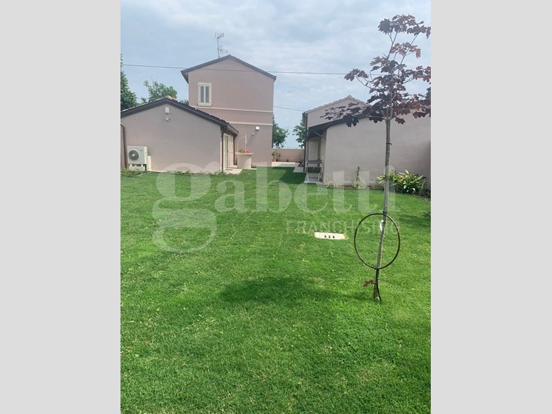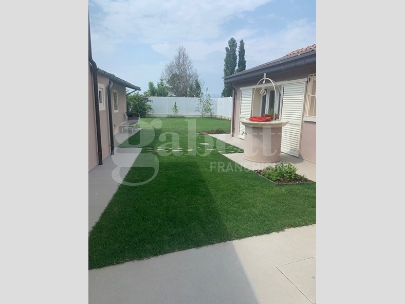 Caratterizzata da finiture di altissimo livello e dotata di moderni impianti a norma, la casa è dotata di tetto coibentato, cappotto da 12 cm, infissi PVC con vetrocamera, impianto riscaldamento e raffrescamento a pavimento, sistema di deumidificazione, ventilazione meccanica controllata, impianto fotovoltaico con 2 batterie di accumulo da 10Kw totali, aspirazione centralizzata. La divisione ottimale degli spazi permette una zona giorno molto confortevole con cucina abitabile arredata e fornita di piano a induzione (non presente Gas)con vetrata a vista sul giardino, salotto accogliente, 2 ripostigli, 1 studio/camera di 14,70mq con bagno adiacente, 2 ampie camere da letto al piano primo, di cui 1 con cabina armadio, e il secondo bagno. Completano la soluzione una cantina/ripostiglio (32,36mq - trasformabile in comoda dependance) e il grande garage (47,90 mq) con porta sezionale automatica munito di colonnina ricarica auto elettrica.