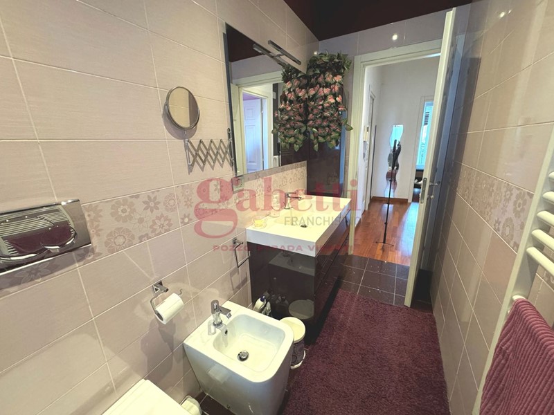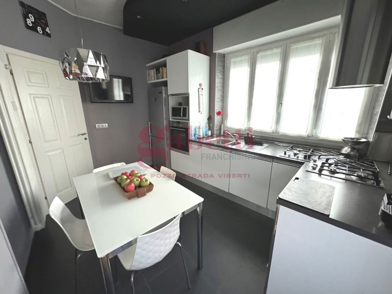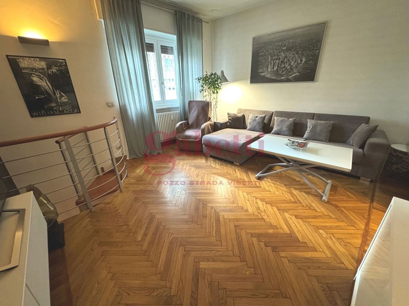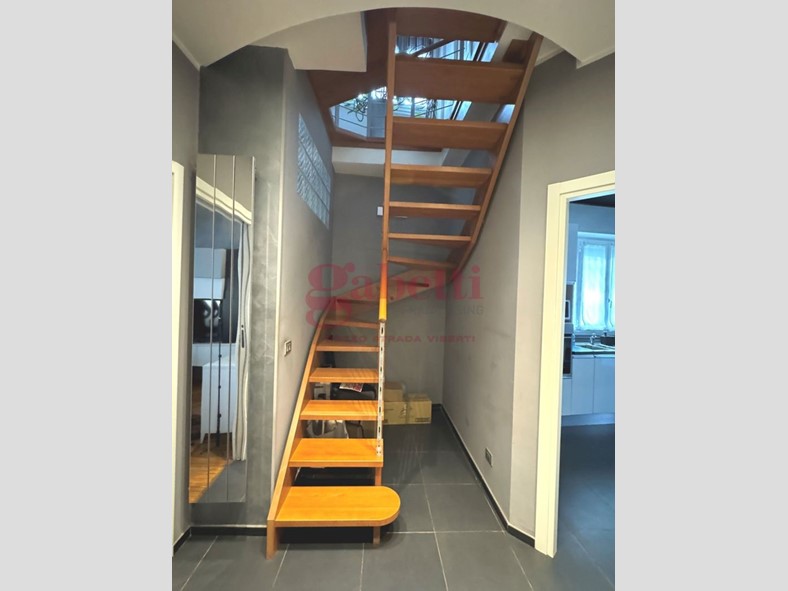 ? Appartamento su due livelli completamente ristrutturato nel 2012 con materiali di pregio e curato nei minimi dettagli. Gli infissi interni sono in legno, mentre quelli esterni sono in legno con doppi vetri. La porta d'ingresso è blindata. L'impianto di riscaldamento è centralizzato con termovalvole ed è presente il climatizzatore nel soggiorno e nelle camere da letto.