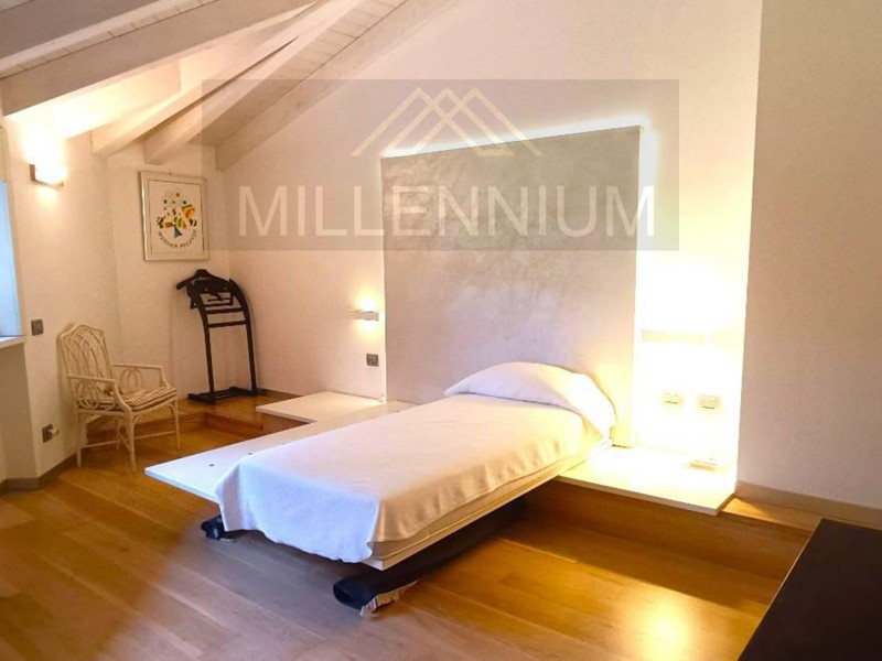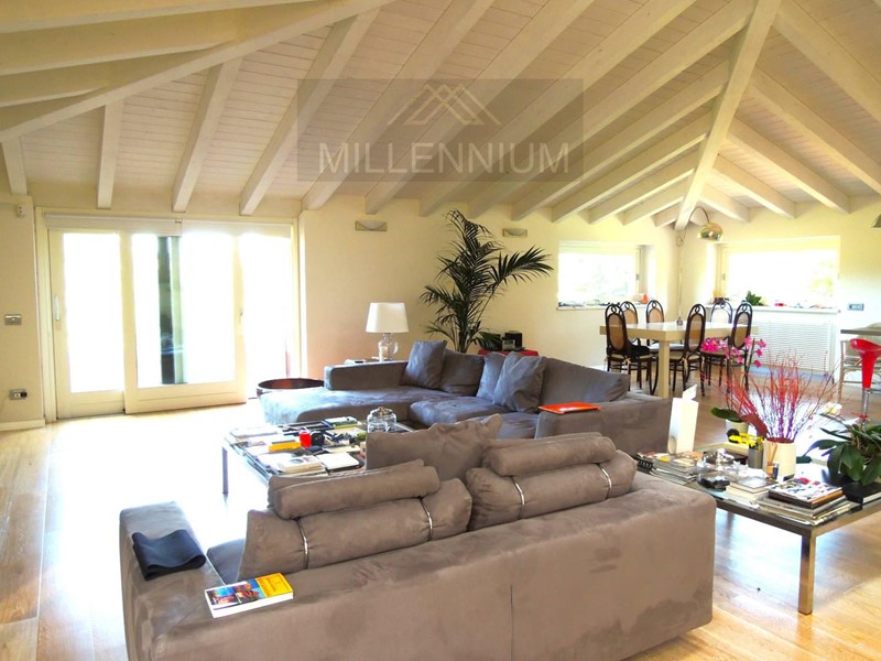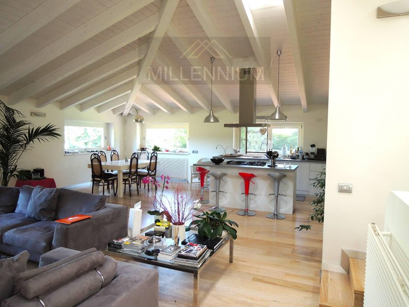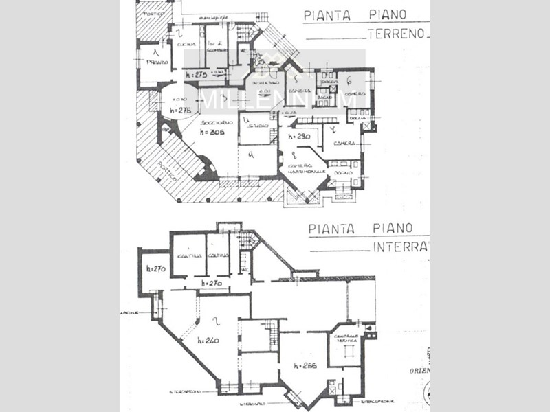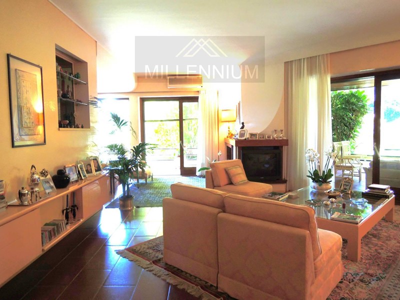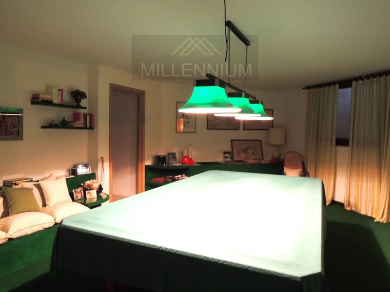 Signorile zona giorno con accesso al Porticato e vedute verso il Parco, sala da pranzo, grande cucina in legno massello, bagno di servizio, camera da letto padronale con bagno interno e altre tre camere con il proprio servizio- al piano rialzato; studiolo al mezzanino; ampia Mansarda composta da due appartamenti (uno per i domestici e l altro, più ampio e modernissimo, con grande terrazzo- per gli ospiti)-al piano primo. Taverna con Angolo Bar, Sala relax- Pianoforte, zona Pranzo con Cucina (forno a legna) e Sala Biliardo.