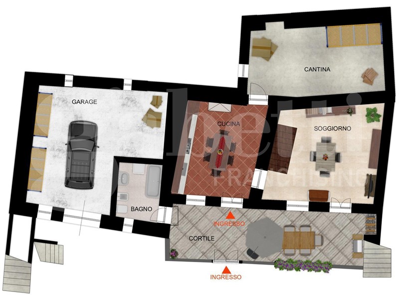 Una casa che sa accogliere. Il piano terra è composto da una spaziosa cucina abitabile, resa calda e accogliente dal termo-camino a legna: il vero cuore della casa, perfetto per creare un'atmosfera intima nelle giornate più fredde. Accanto, un soggiorno confortevole dove rilassarsi dopo una giornata intensa, un bagno funzionale, una grande cantina - ideale come spazio per la conservazione di vini, marmellate e conserve - e un garage dalle dimensioni generose, perfetto per auto, moto o hobby ingombranti.