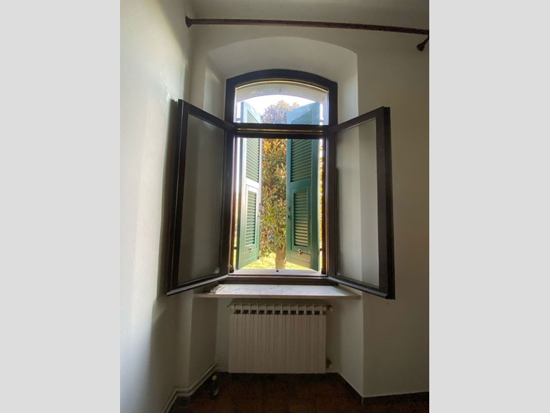 L'immobile, di circa 120mq, è composto da ingresso, ampio e luminoso soggiorno, cucina abitabile con porta che da direttamente sul retro, 2 camere matrimoniali e 1 bagno completamente ristrutturato nel 2004. Lo stabile di sole 6 unità abitative, vanta di una posizione centrale ma allo stesso tempo, fuori dal caos cittadino ed immersa nel verde, in modo tale da poter garantire tranquille passeggiate all'ombra degli alberi del bosco adiacente.