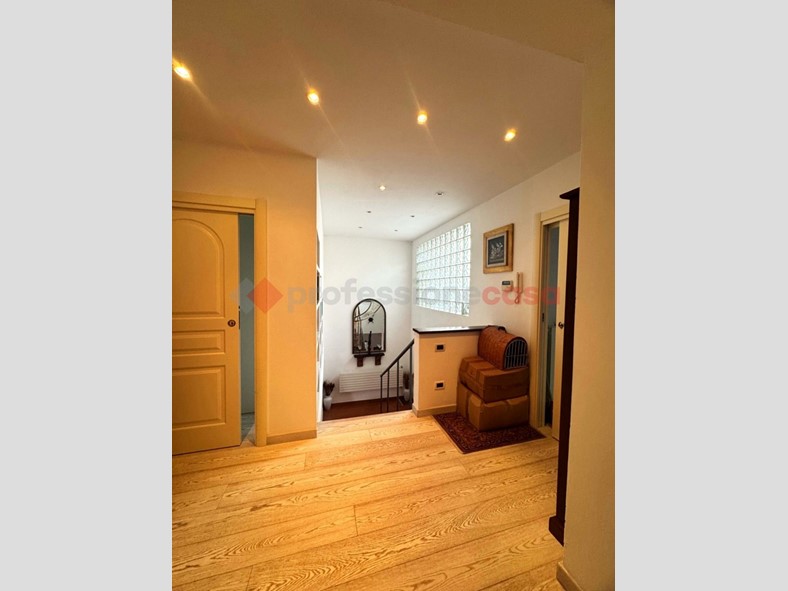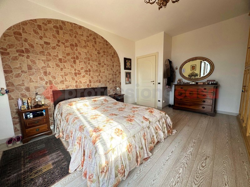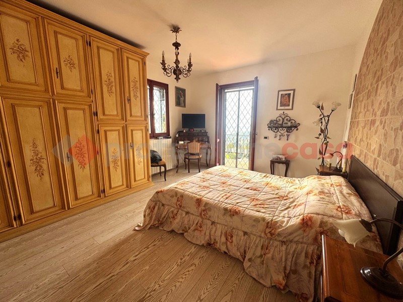 Salendo al primo piano, la zona notte è composta da tre ampie camere, una delle quali vanta l'accesso a un balcone/terrazza con una vista mare mozzafiato, ideale per godersi momenti di relax all'aperto. Il piano è completato da uno studio con chiostra e doppi servizi, che garantiscono comfort e funzionalità per tutta la famiglia.