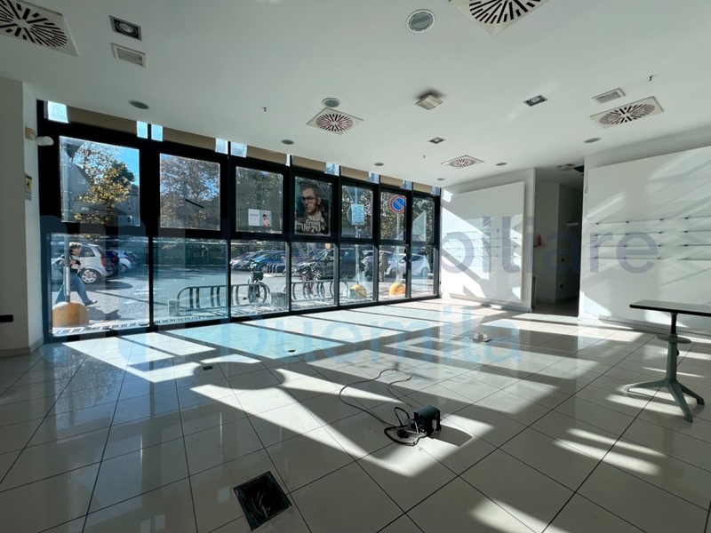 NEGOZIO mq 75 Bologna Corticella all'ingresso principale del centro commerciale, due vetrine, bagno, antibagno e magazzino. Libero da gennaio 2026, canone mensile euro 1.100