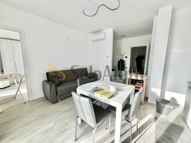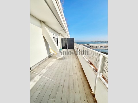Palazzo Marisabella, in stabile di nuova costruzione all'8° piano con doppio ascensore, luminoso e comodo 2 vani ben arredato composto da: ingresso con disimpegno, salone a vista con cucina, camera da letto, bagno con doccia, ripostiglio, ampio terrazzo panoramico vista mare. L'immobile dispone di tutte le più moderne tecnologie, riscaldamento autonomo a pavimento, raffreddamento canalizzato autonomo, porta blindata, lavatrice, servizio di portierato.
