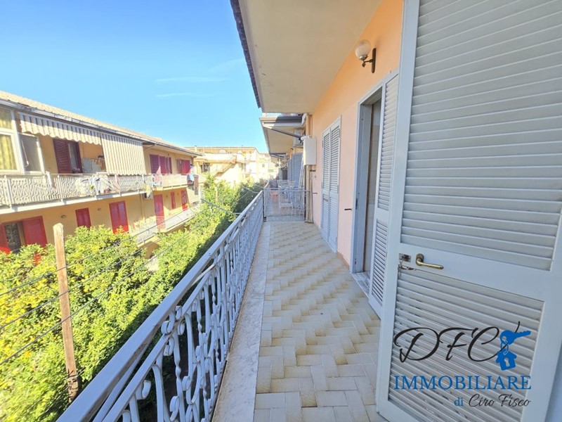 Caivano: la DFC Immobiliare di Ciro Fisco Propone in Affitto Ampio appartamento sito al primo piano con terrazzino a livello.\nL'immobile misura circa 110mq interni ed è così composto: ingresso in corridoio, ampio salone, cucina abitabile, due camere da letto e due bagni.\nLa casa dispone di duplice affaccio, sia interno che esterno.\n\nIl presente annuncio è prevalentemente rivolto a persone con doppio reddito. - Maggiori Dettagli: Porta blindata