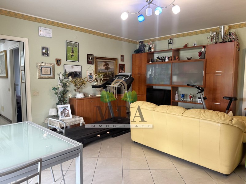 LAppartamento è composto da: ingresso, soggiorno spazioso, cucina abitabile, una camera matrimoniale, una camera doppia, una camera singola, due bagni finestrati di cui uno con doccia e l'altro con vasca idromassaggio.