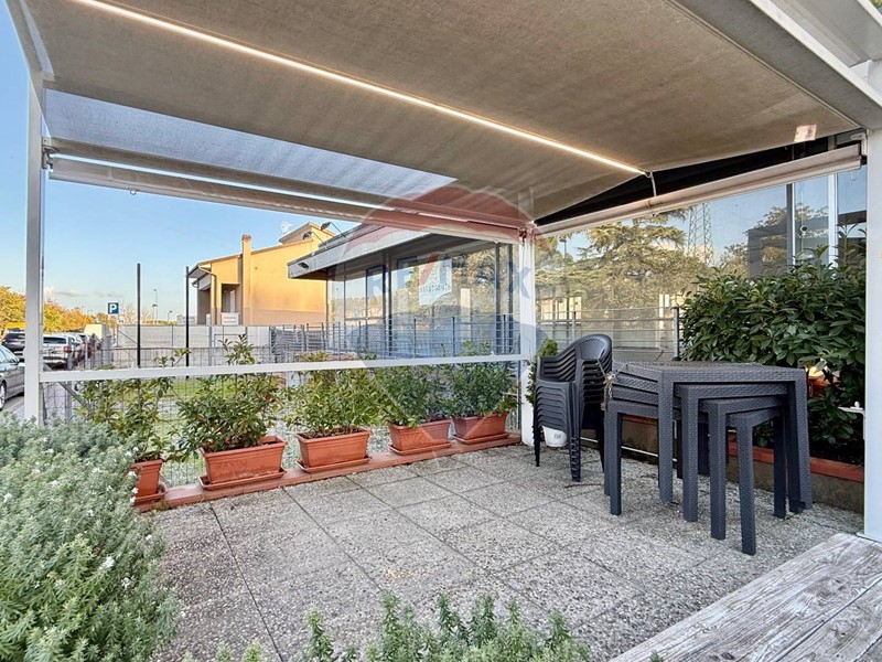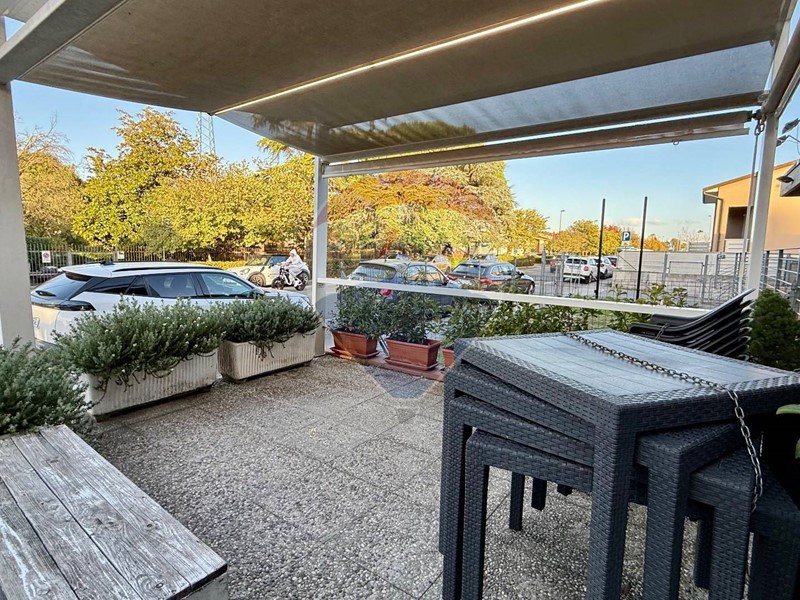 un dehor chiuso a vetri, utilizzabile tutto lanno, ideale per ampliare i coperti nella stagione invernale;