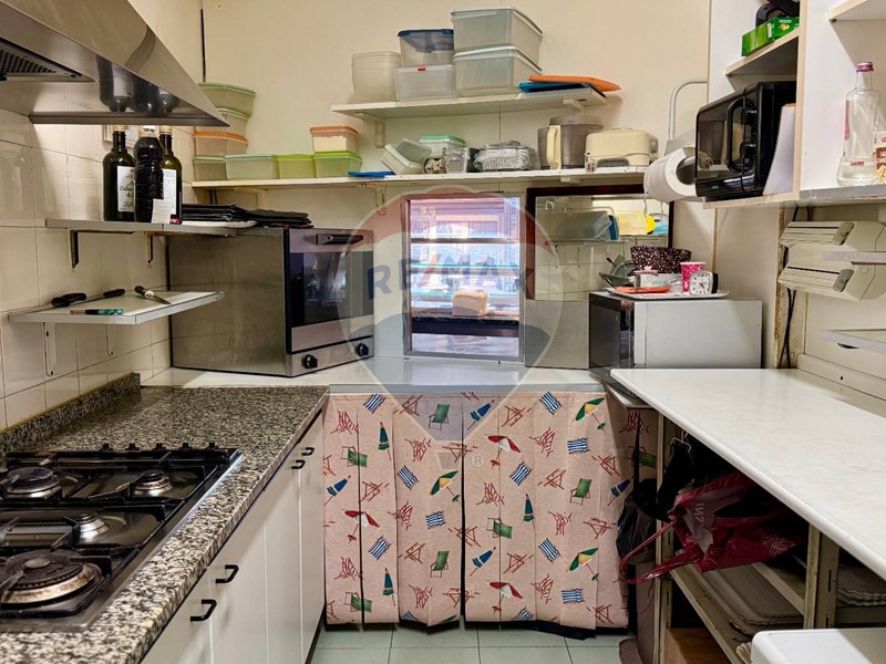 La cucina, completamente attrezzata con impianti e macchinari professionali, consente la preparazione di piatti caldi e freddi, rendendo il locale adatto non solo alla somministrazione di colazioni e aperitivi, ma anche a pranzi veloci, cene informali e piccoli eventi.