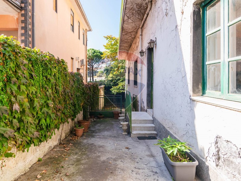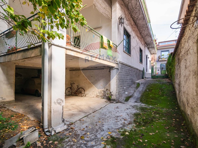 Circondata da un muretto di cinta, con piccole lance in ferro battuto, che la protegge e la distacca leggermente dalla strada, è dotata di un antico cancello in ferro battuto, con rialzo in pietra lavica, che immette in uno spazio perimetrale a giro di esclusiva pertinenza della abitazione, collocata al piano rialzato, lasciando in comune con i proprietari del primo piano le parti che dal cancello portano al portoncino e alla saletta, che funge da anticamera ai due appartamenti.
