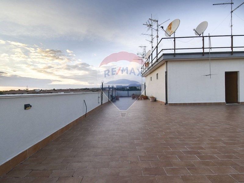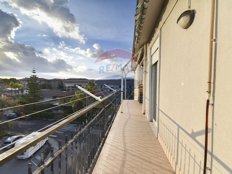 L'appartamento si presenta in buone condizioni con infissi esterni in alluminio vetrocamera, pavimenti in segato di marmo ottima base per sovrapporre il nuovo pavimento, mentre gli impianti ( idrico ed elettrico ) seppur funzionanti sono quelli originali degli anni '80, per quanto riguarda la facciata è stata rifatta circa 10 anni fa ed ancora in buono stato come anche i frontalini ed i ballatoi, la terrazza sovrastante che fa da copertura condominiale ma che per metà è di esclusiva proprietà dell'appartamento ( posto proprio al di sotto ) è stata anch'essa ripavimentata ed è possibile godere di un ampio panorama e della vista Etna.