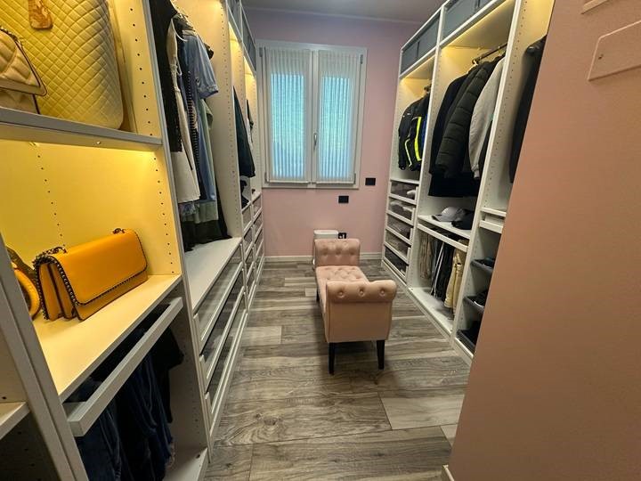 Il disimpegno notte conduce a una cameretta, una seconda stanza oggi adibita a cabina armadio, un bagno/lavanderia, un bagno padronale con doccia walk-in e una camera matrimoniale dotata di balcone privato.