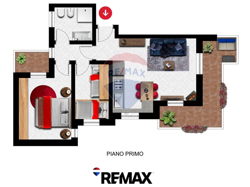 Lingresso si apre su una luminosa zona giorno openspace, accogliente e funzionale, con accesso diretto a un ampio balcone dalla quale si può ammirare una splendida vista sulle montagne e sulla natura circostante. Qui regna la quiete: dinverno puoi gustare una cioccolata calda ammirando la neve che cade, mentre destate respiri aria fresca e pulita, circondato dal verde. Un disimpegno conduce alla zona notte, composta da due camere da letto, di cui una con accesso a un secondo terrazzino e da un bagno finestrato dotato di doccia.