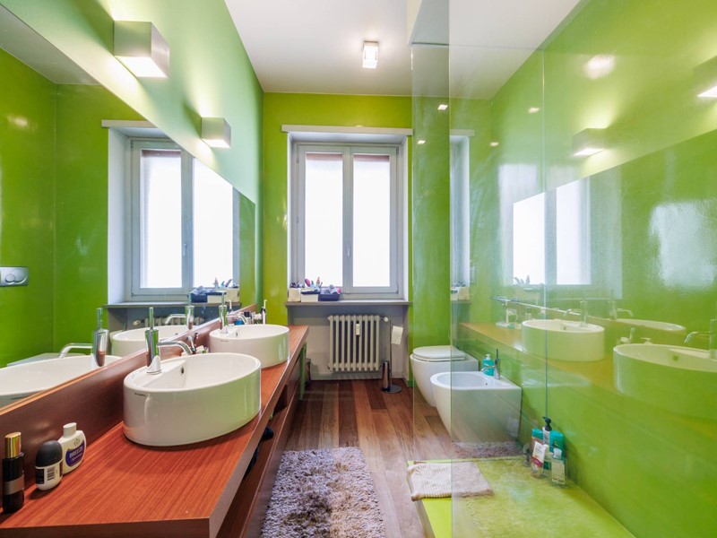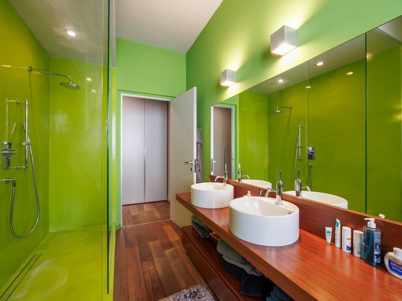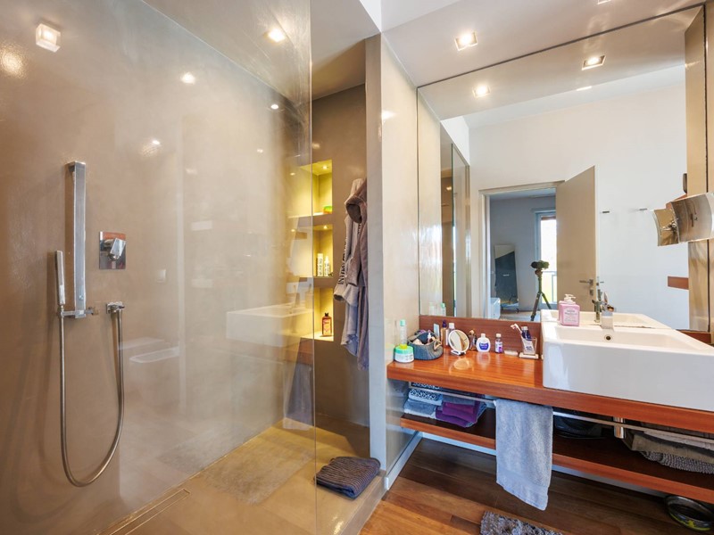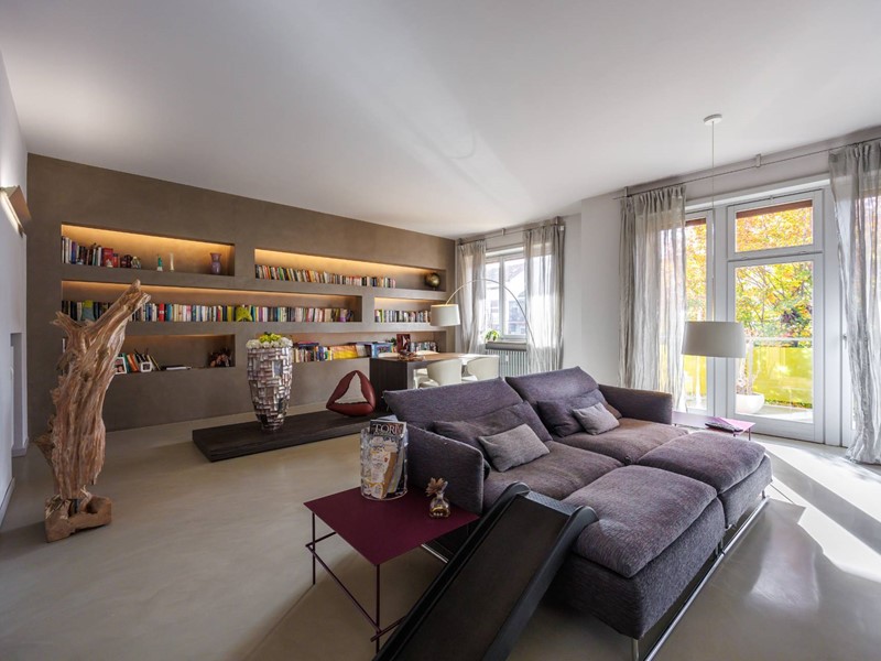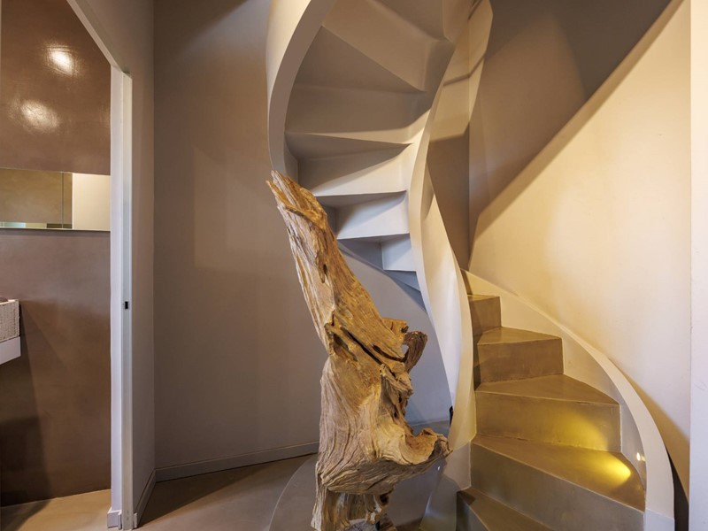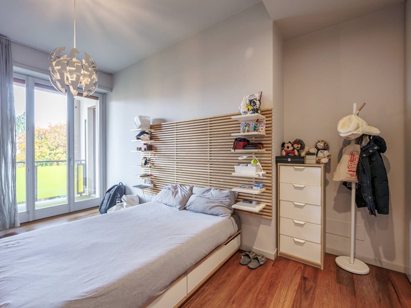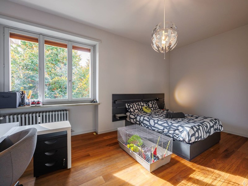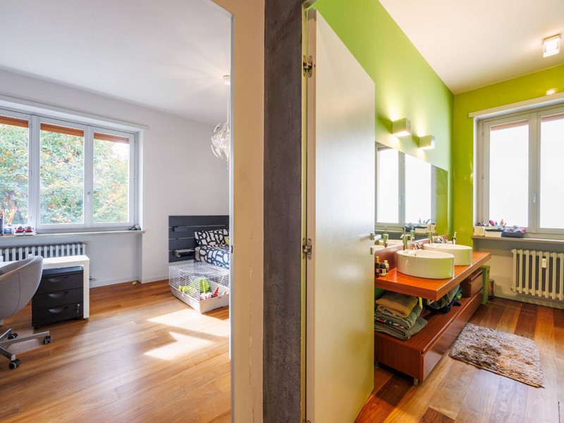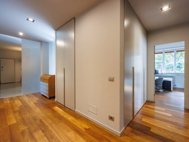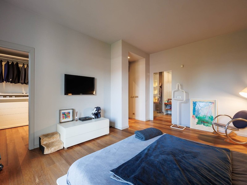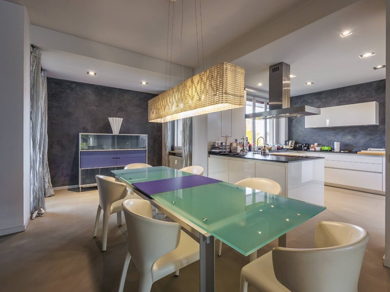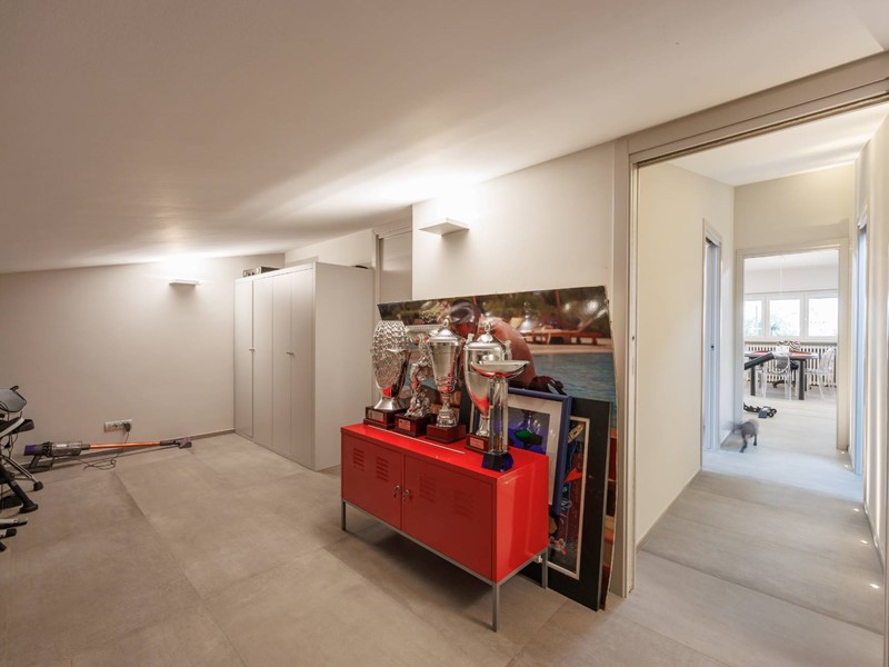 Pavimenti in resina nella zona giorno e parquet nella zona notte, arredi su misura, finiture curate, tecnologie di ultima generazione come impianto antifurto con barriere a infrarossi, porta blindata con ingresso a scheda, tapparelle elettriche con chiusura centralizzata, vetri di sicurezza e impianto di condizionamento.