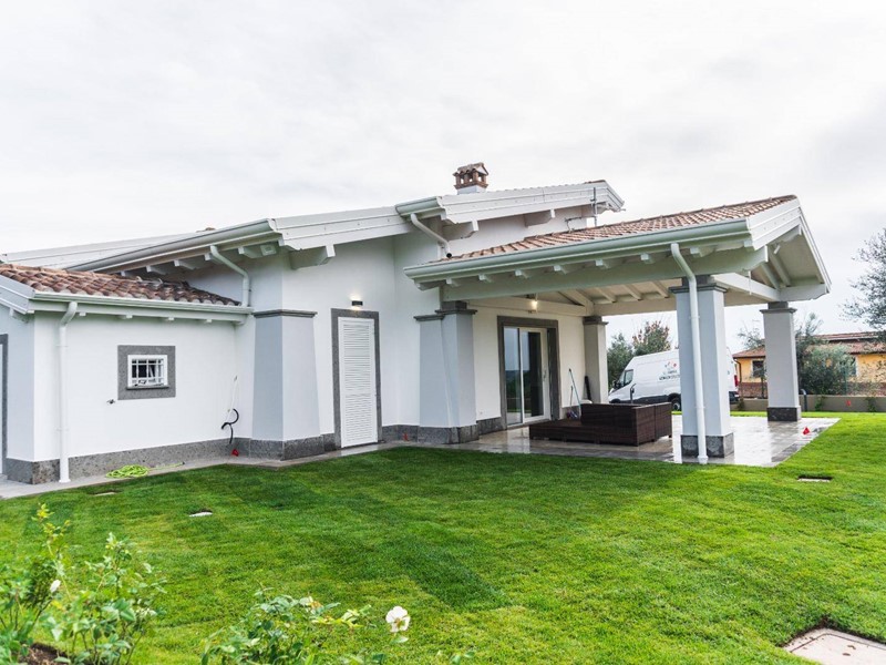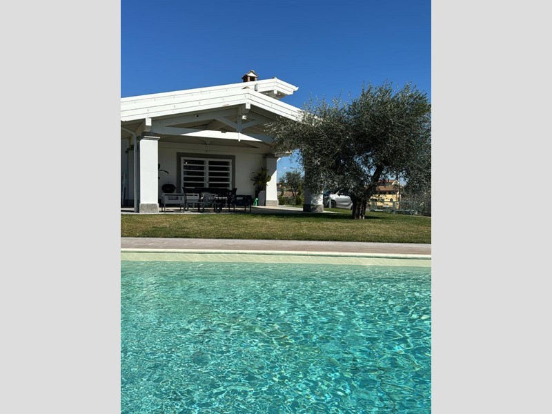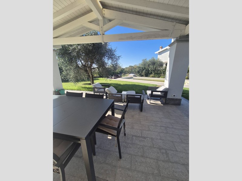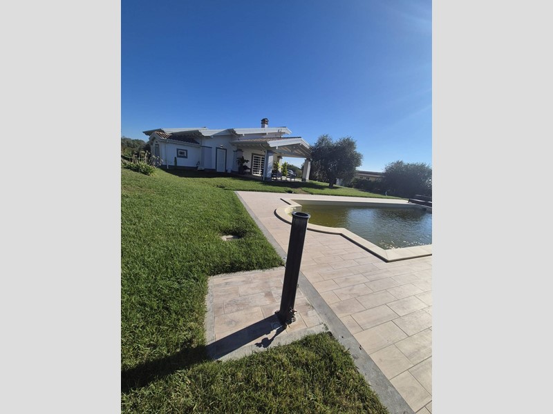 Completa la proprietà un porticato di ampia metratura con affaccio sulla piscina sale-cloro.