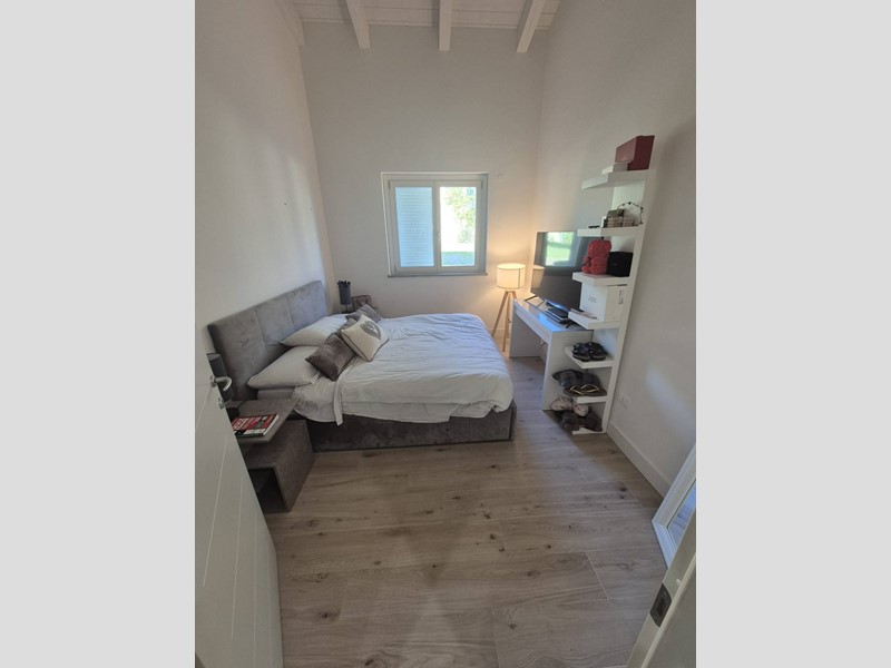 L'immobile, di recente costruzione, è composto da: luminoso salone con camino e cucina a vista che danno direttamente sul porticato, disimpegno, primo bagno di servizio, camera, seconda camera al momento adibita in cabina armadio gigante e bagno con doccia e vasca idromassaggio.