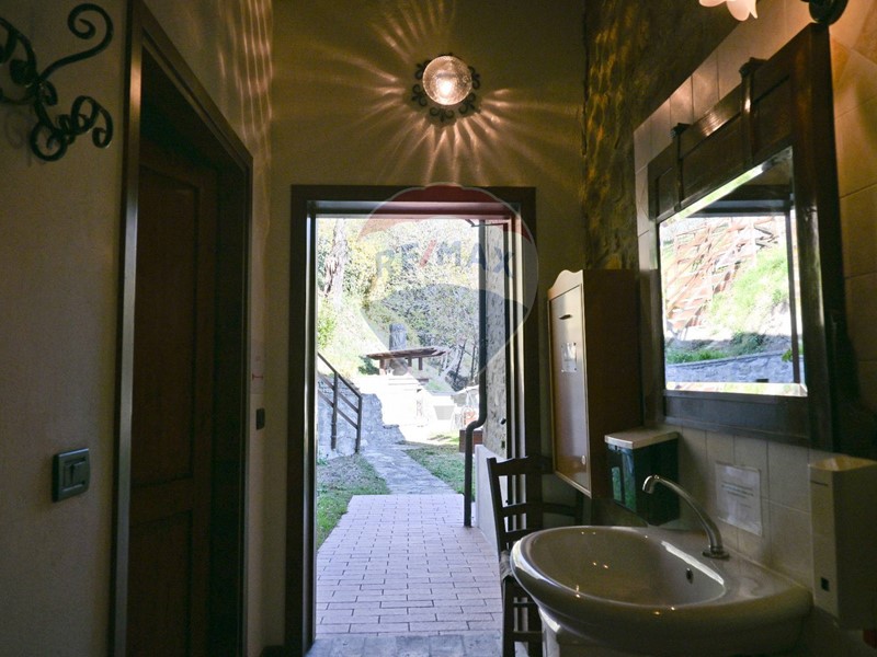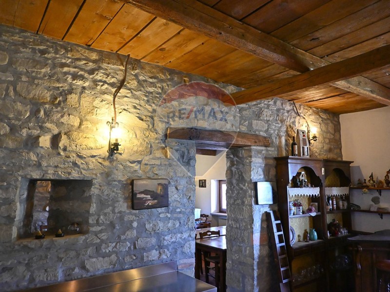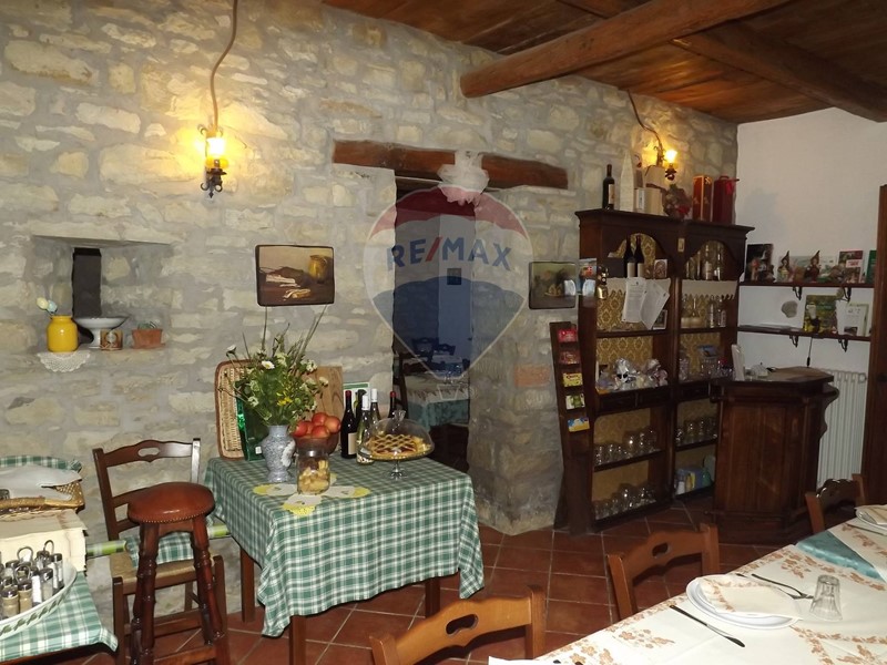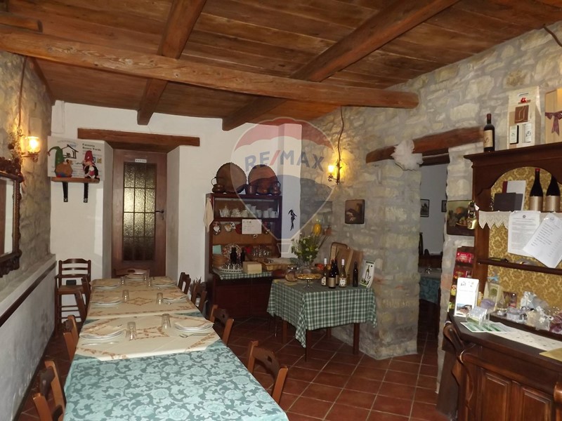 - cucina professionale con camino e stufa a legna, sala ristorante, ingresso