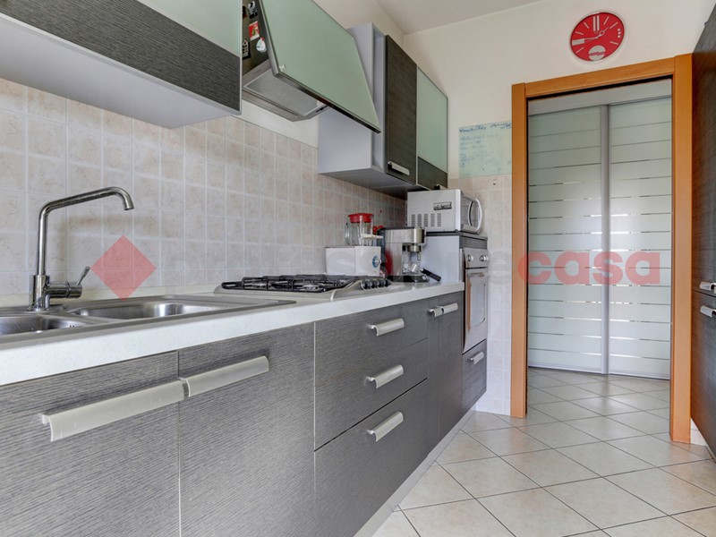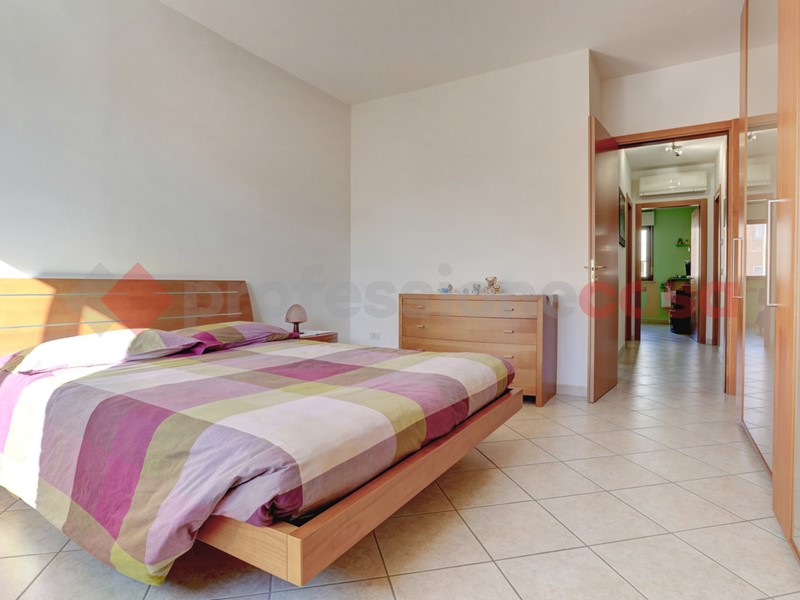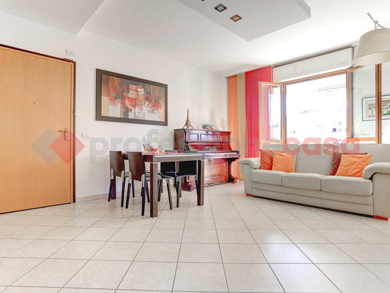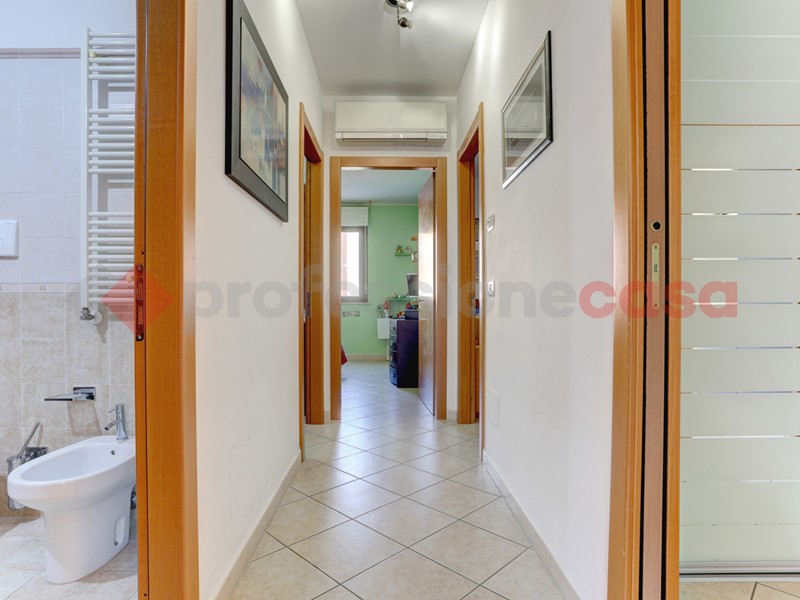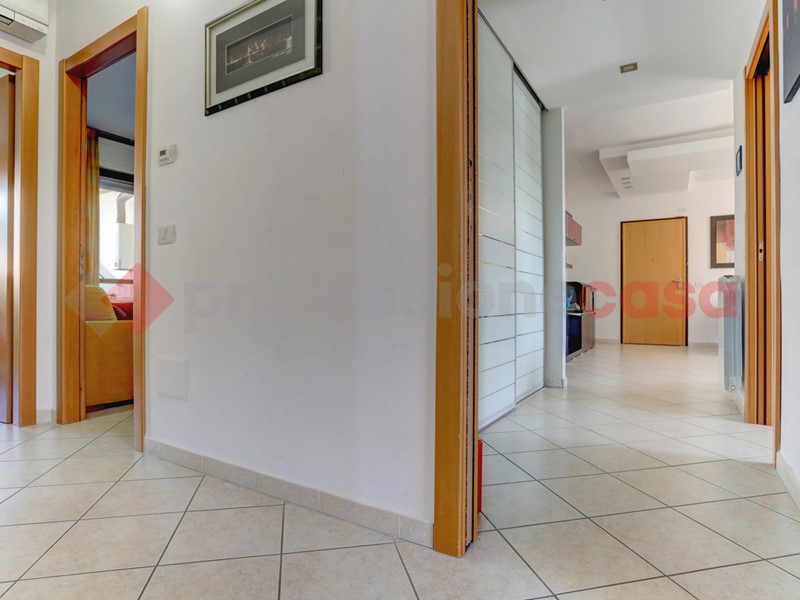 L'appartamento della superficie di 110 mq, si trova al piano secondo di una palazzina di tre piani, servita da ascensore. L'ingresso nel luminoso soggiorno, che comunica direttamente con la cucina separata, entrambi con accesso al terrazzo abitabile di 20 mq, dotato di tenda solare elettrica. Il disimpegno conduce alle tre camere da letto, ai due bagni, entrambi con finestra nel cavedio, oltre a un ulteriore balcone di 10 mq, attrezzato con armadio su misura e zona lavanderia. Completano la proprietà un box auto di 32 mq al piano seminterrato e un posto auto scoperto di 12 mq al piano terra.