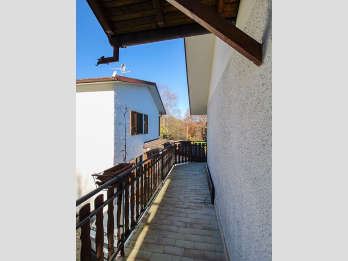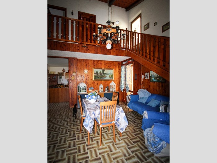 L'abitazione è così strutturata: a pianterreno doppio ingresso, soggiorno, sala da pranzo, cucina con affaccio su veranda esterna, camera, ripostiglio e locale lavanderia. Al primo piano corridoio soppalcato dal quale si accede al balcone che si sviluppa sui due lati dell'immobile, due camere da letto e bagno con doccia e secondo balconcino.