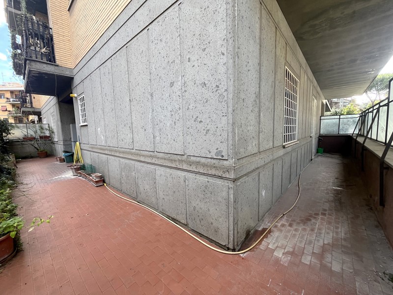 Via Montaione - Zona Nuovo Salario - In un contesto tranquillo e residenziale e nelle immediate vicinanze di tutti i principali servizi, proponiamo in vendita un appartamento di circa 105 mq con circa 40 mq di terrazzo perimetrale, posto al piano terra di una palazzina in cortina di totali piano cinque. L'immobile si compone di un ampio ingresso, soggiorno con uscita sul terrazzo, cucina abitabile con seconda uscita sul terrazzo, due camere matrimoniali e due bagni finestrati. L'appartamento ha di pertinenza una soffitta posta al 5 piano e si presenta già con parquet in tutta casa, impianto di riscaldamento centralizzato con contabilizzatori e valvole e inferriate in tutte le finestre. Possibilità di acquistare separatamente un box auto.