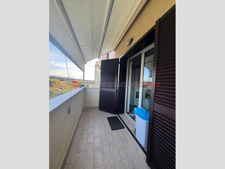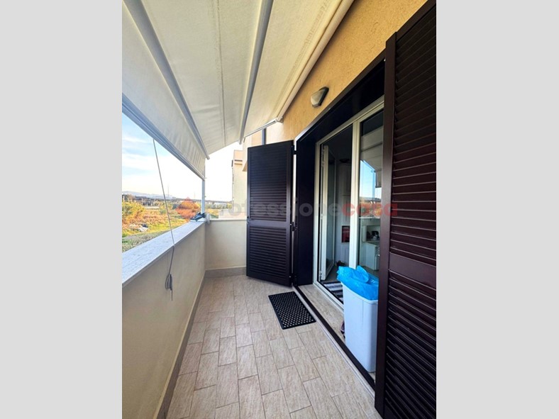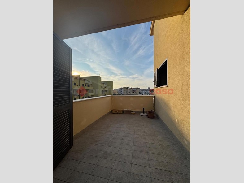 L' ingresso si apre sul soggiorno con cucinotto a vista, entrambi con accesso al balcone, mentre la camera matrimoniale ha l'accesso terrazza abitabile.