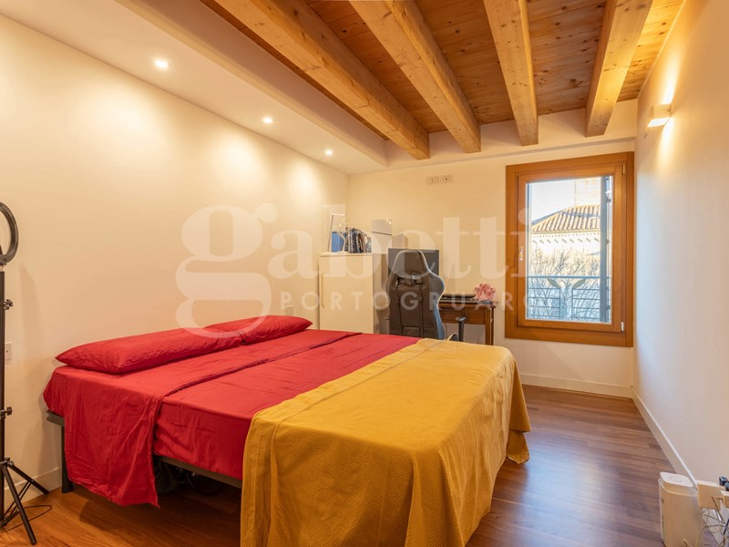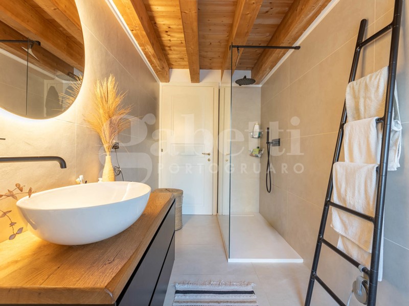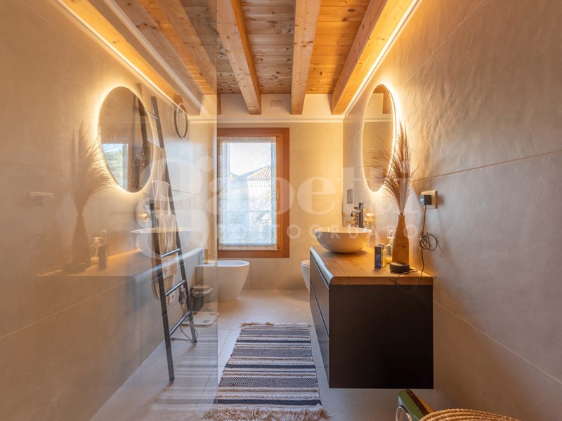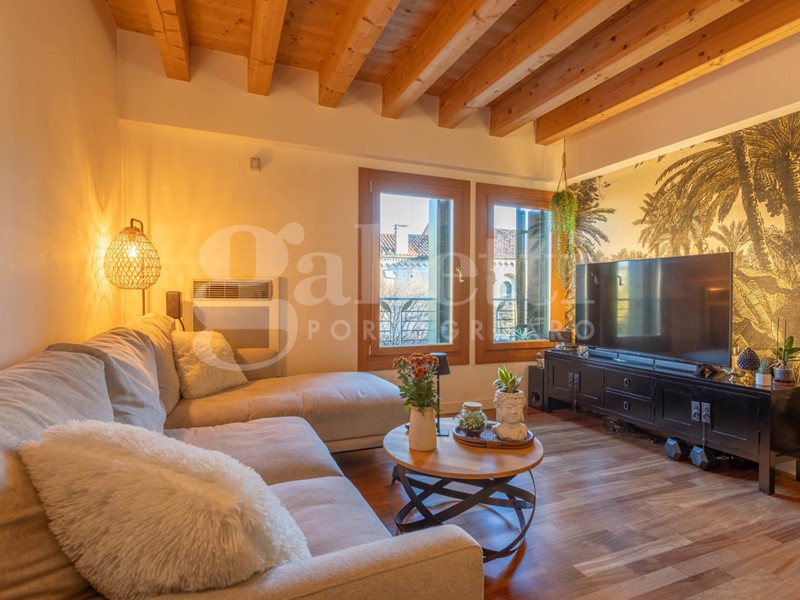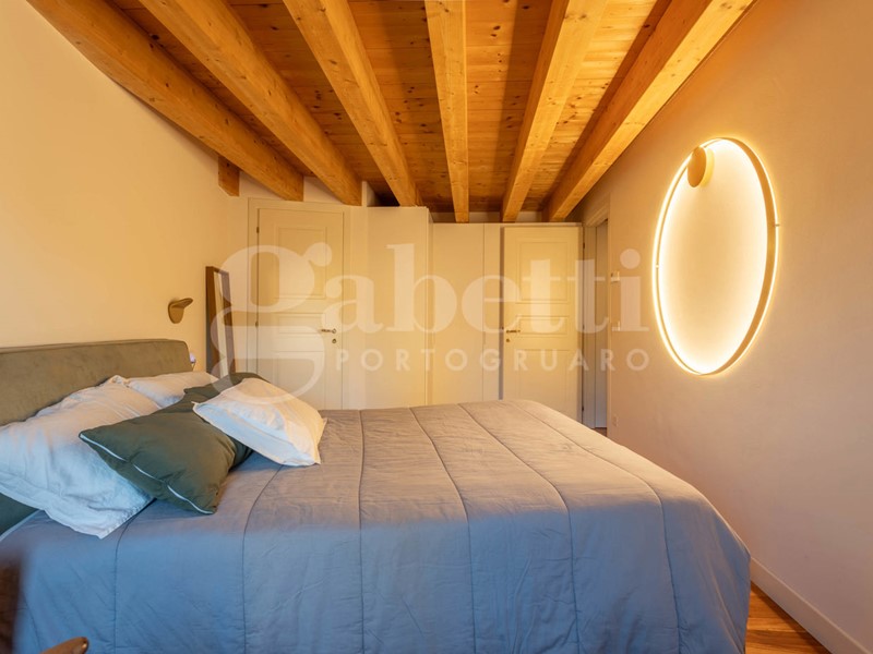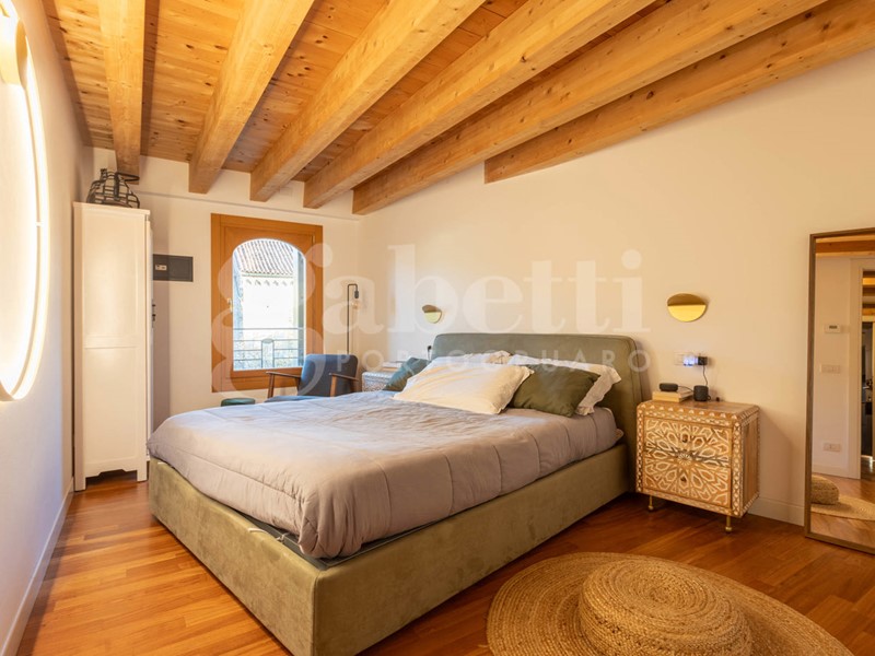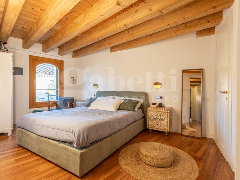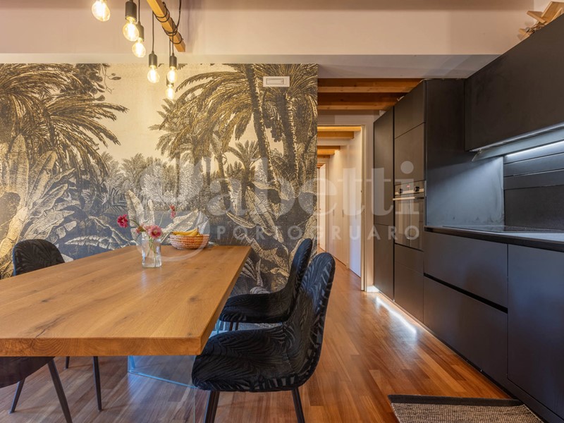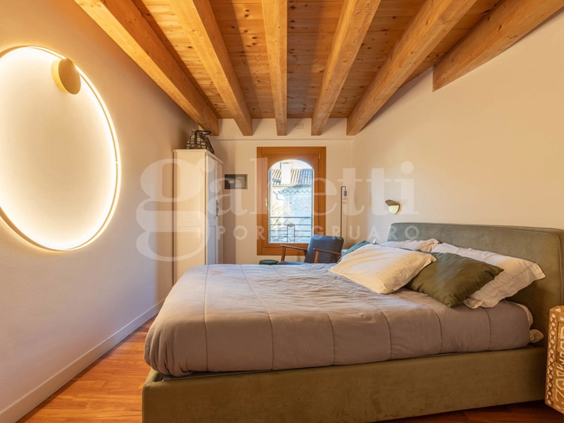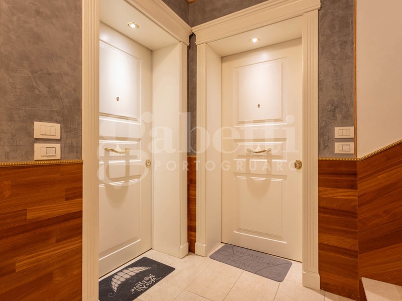 Inserito in un contesto condominiale di assoluto pregio e servito da ascensore, l'appartamento accoglie con un'atmosfera calda e raffinata, grazie alle travi a vista e alle pavimentazioni in legno che donano armonia e continuità agli ambienti.
