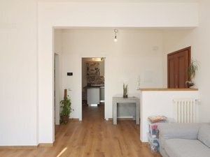 La zona giorno, per un totale di circa 50 mq, è suddivisa negli spazi cucina-salotto che sono però largamente utilizzabili vista la metratura. Inoltre con piccoli nuovi aggiustamenti è possibile unire del tutto i due vani o addirittura creare una terza camera.