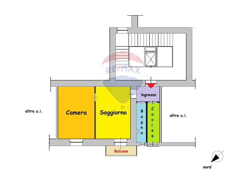 Limmobile si presenta in buone condizioni generali ed è composto da: ingresso, cucinotto, bagno (entrambi oggetto di una recente ristrutturazione), due ampie camere, di cui una con balcone ed una con finestra, ed inoltre, grazie all'altezza delle pareti è stato realizzato un comodo soppalco/ripostiglio, tra il cucinotto ed il bagno.