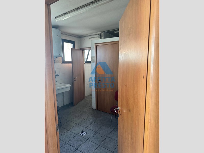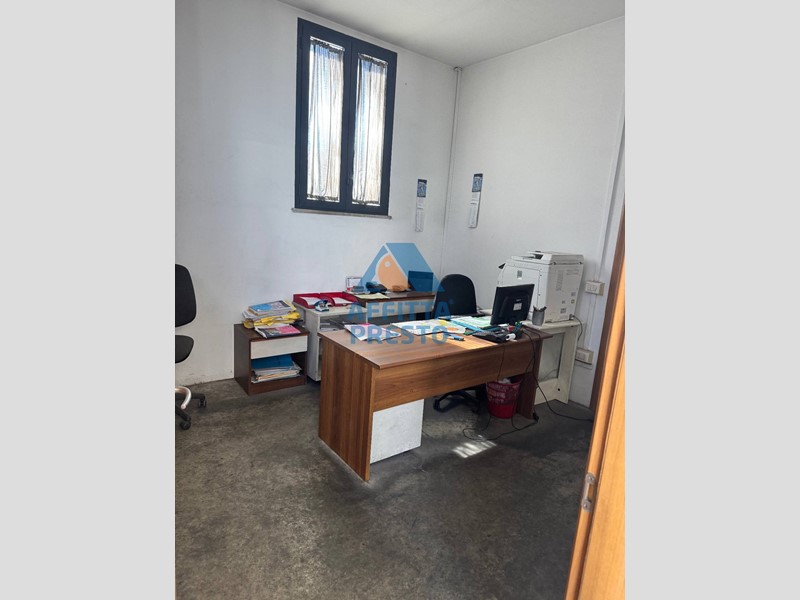 L'immobile si compone di tre grandi vani di circa 400 metri quadrati ognuno , oltre a due vani uso ufficio e doppi servizi e magazzino .