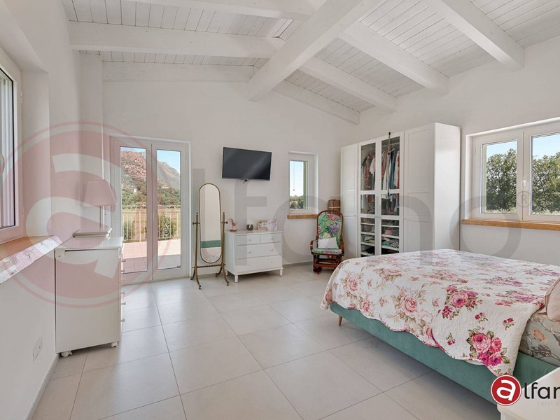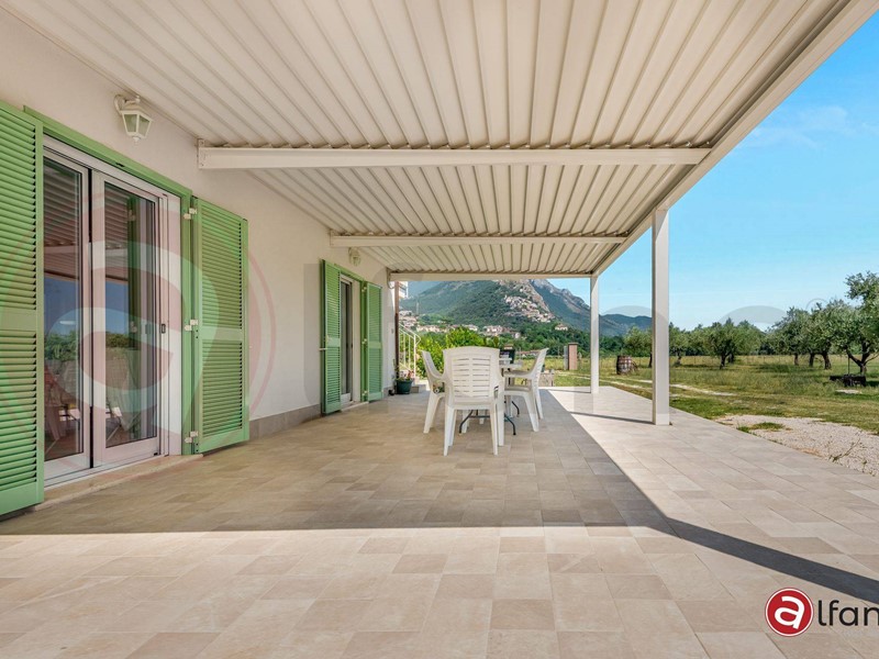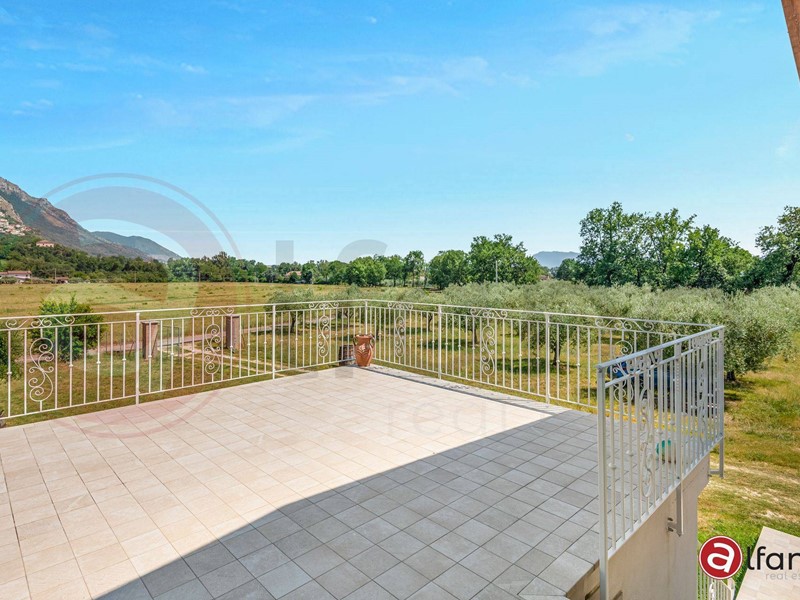 Una delle caratteristiche più affascinanti della villa è il grande terrazzo, che si affaccia sulla vallata circostante, offrendo scorci unici sul centro storico del paese in uno spazio ideale per il relax.
