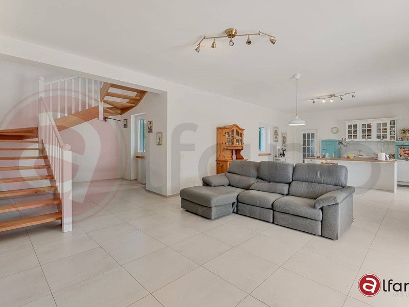 Al piano terra, l'ingresso si apre su un ampio e luminoso soggiorno open space con ampie vetrate che offrono una splendida vista sul giardino e sul paesaggio circostante.