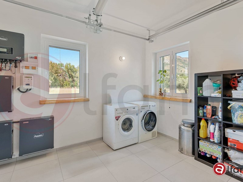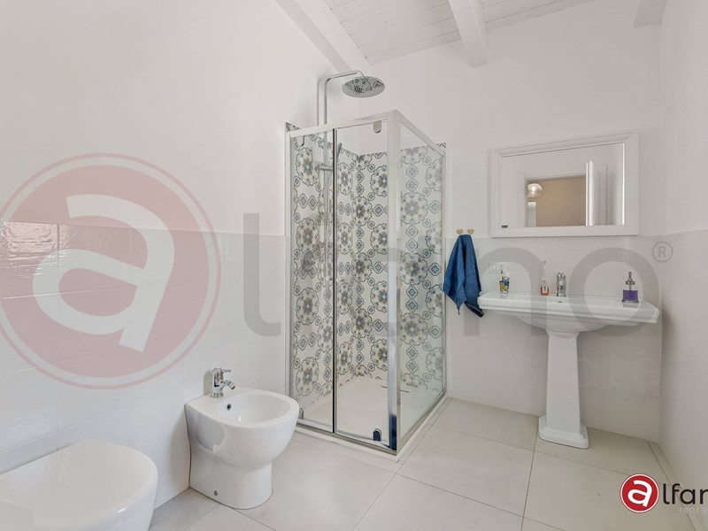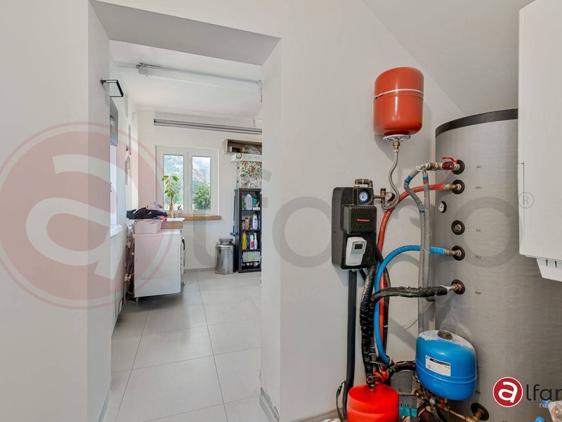Completa il piano terra un elegante bagno di servizio e una prima stanza da letto, oltre ad unampia area oggi adibita a lavanderia.