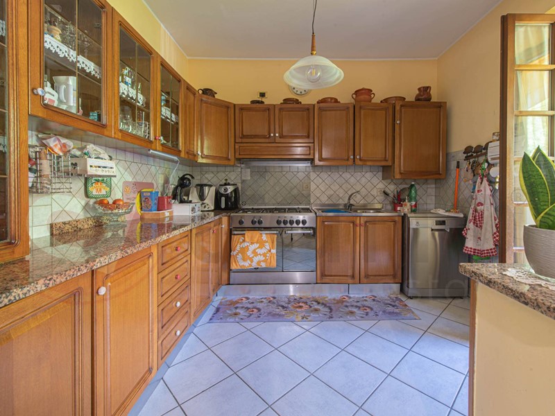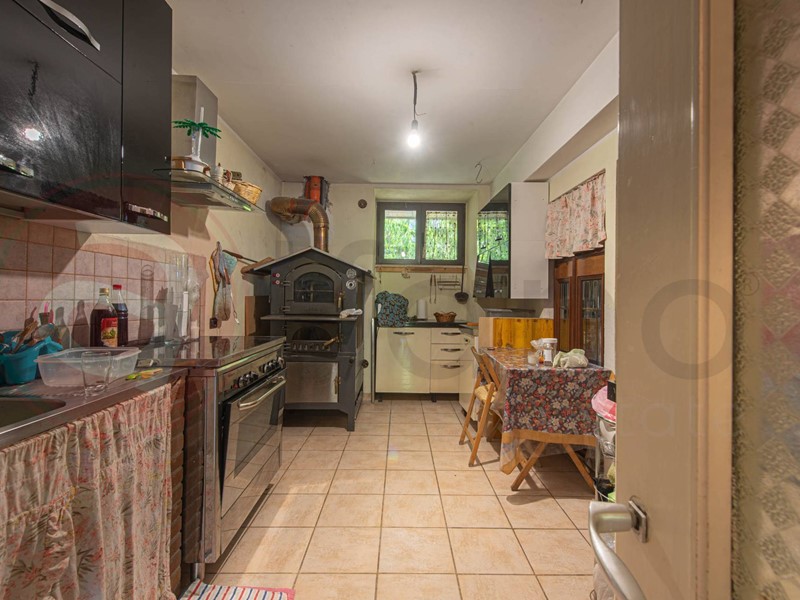 Al pian terreno troviamo il suddetto box auto, una cucina rustica con forno a legna, sala da pranzo, servizio e cantina.