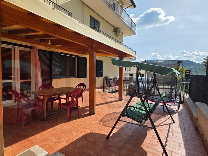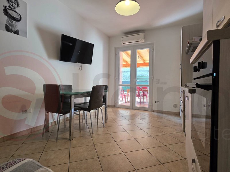 Internamente è composto da ingresso, salone con cucina a vista e ampio terrazzo di circa 30 mq, due camere da letto, servizio e balcone.