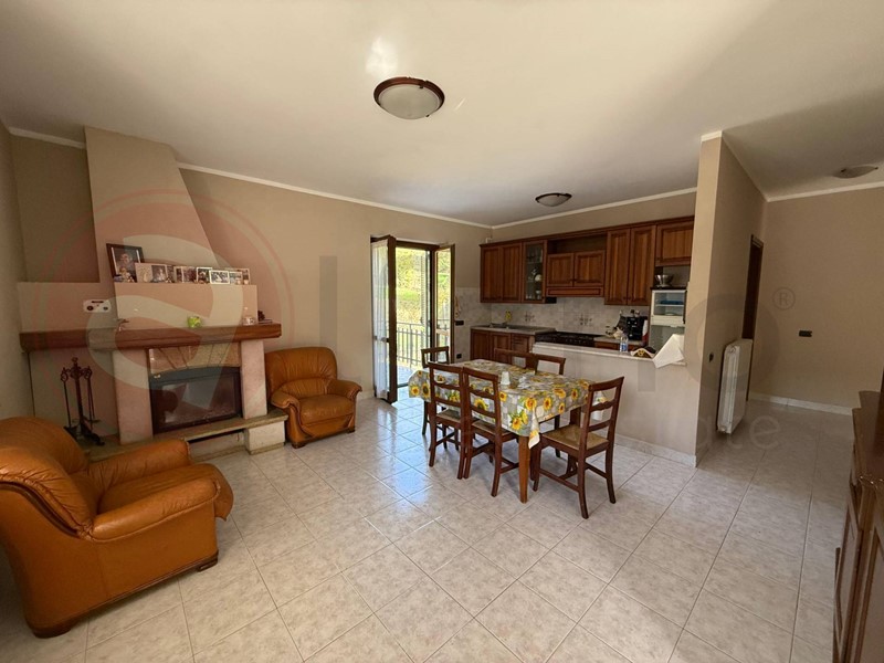 Allinterno, labitazione accoglie con un luminoso soggiorno con camino open space, dove convivono armoniosamente la zona living e la cucina, in un ambiente caldo e familiare con accesso diretto alla veranda esterna.