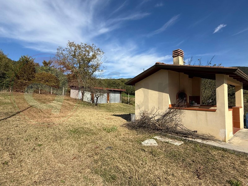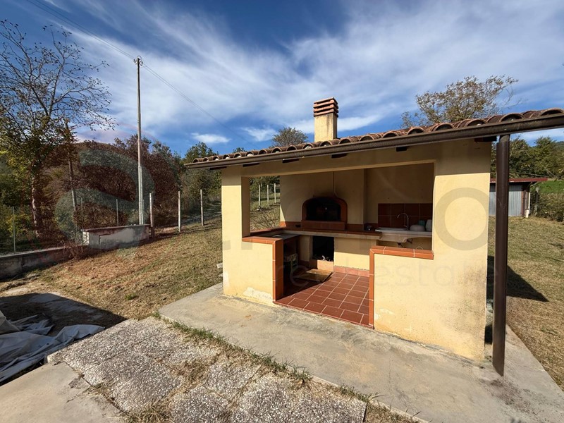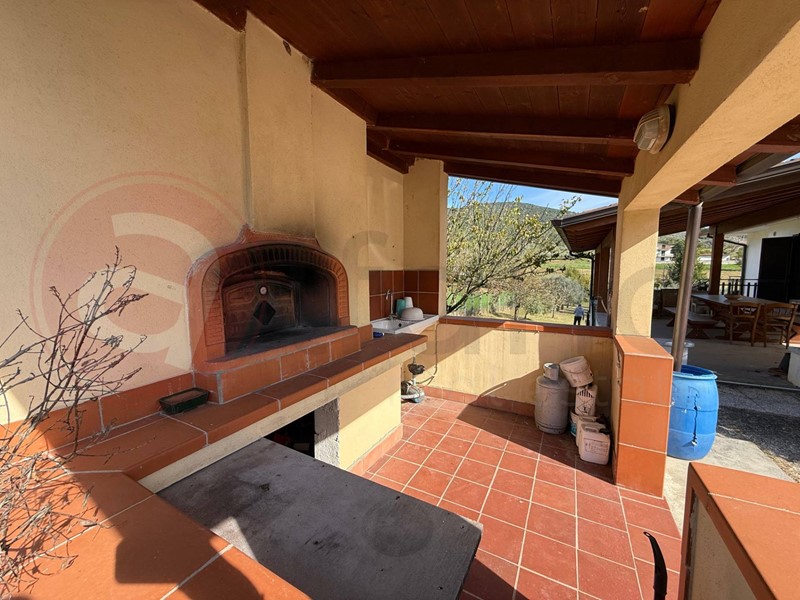 Diversi accessori completano la proprietà: un forno a legna costruito con grande cura, perfetto per pranzi e cene allaperto, magazzini che possono facilmente essere adibiti a box auto o spazi hobby, e una veranda coperta in legno, ampia e accogliente, da cui si può godere una vista panoramica sulla vallata circostante.