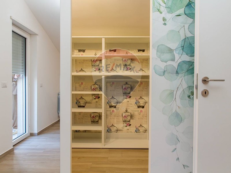- piano mansarda: cameretta con balcone e ripostiglio, camera matrimoniale con cabina armadio e balcone ovest, bagno con box doccia, ripostiglio, lavanderia, due balconi.