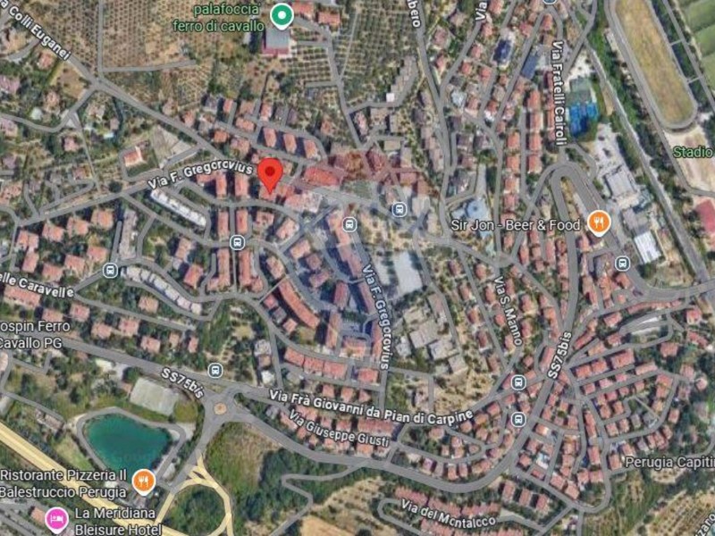 Diritti di piena proprietà su un appartamento ubicato al piano seminterrato di un condominio di civile abitazione, composto da ingresso, cucina, soggiorno, tre camere, un bagno, un wc e disimpegno, un garage al piano interrato, oltre i proporzionali diritti di comproprietà sulle parti comuni interne ed esterne del fabbricato e su quanto altro comune ai sensi di legge, il tutto ubicato in Comune di Perugia via F. Gregorovius n. 58.